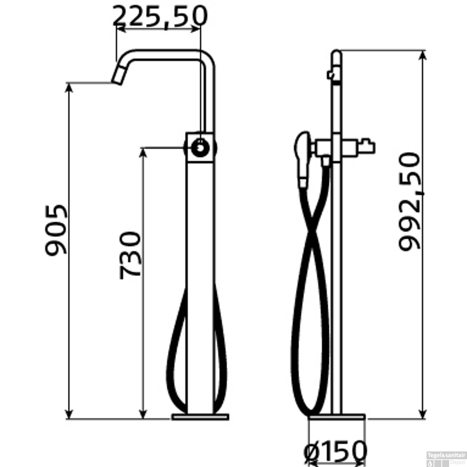 Specificaties Clou Kaldur Vrijstaande Badmengkraan Chroom (Exclusief Handdouche):