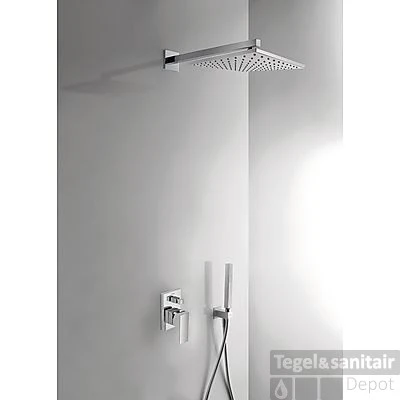 Een stijlvolle regendouch met een doorsnede van maar liefst 250mm. Ook antikalk handdouche met massage douchekop en satijnslang. Strak design inbouw regendouche met regendouche van hoogwaardige kwaliteit! Messing verchroomde kraan. Met de chrome afwerking behoud het jarenlang zijn glans. Technische tekening is aanwezig.