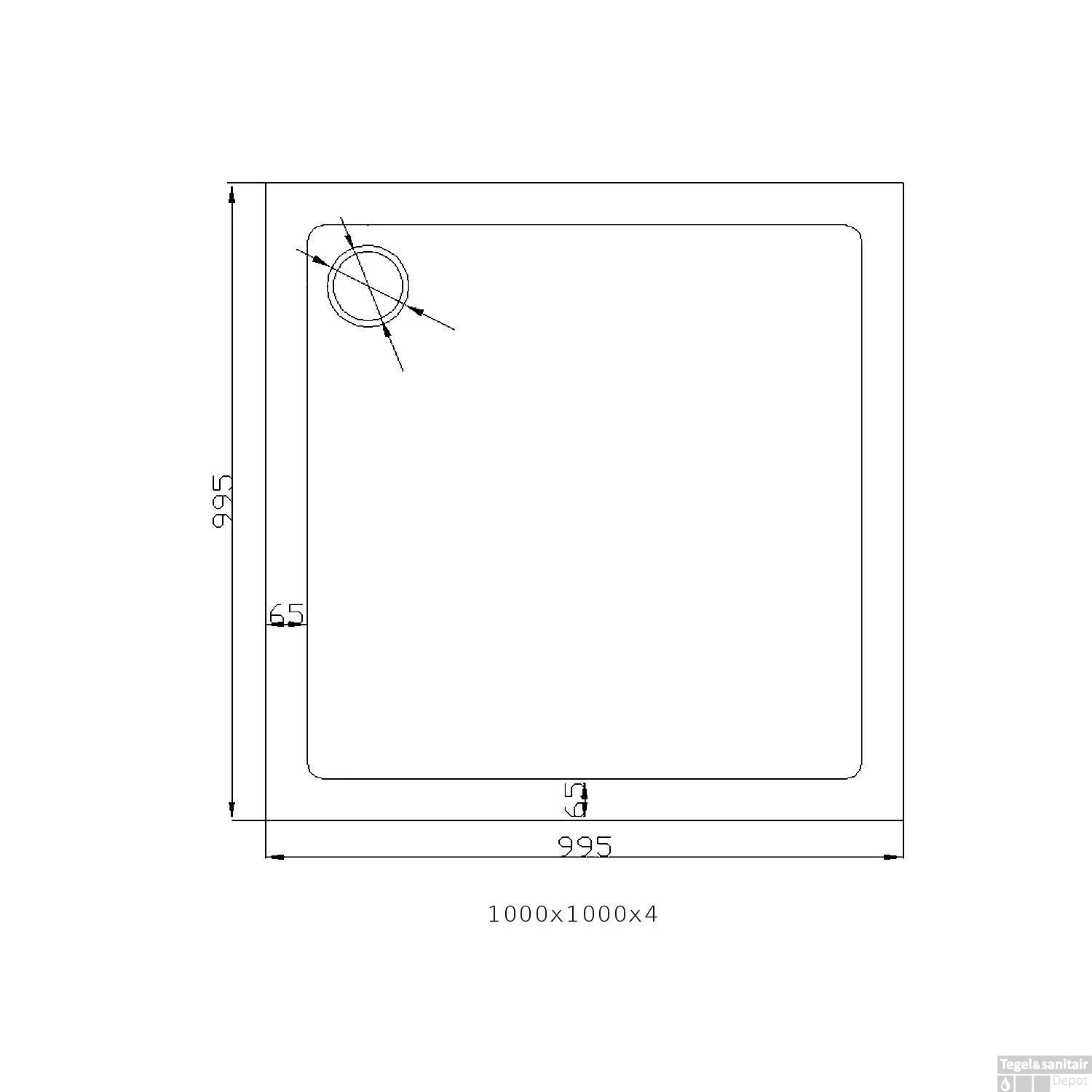 De afvoer zit bevestigd in de hoek van de bak voor een mooi uiterlijk. De mooie hoogglans douchebak heeft een lage opstaande rand zodat het water niet weg kan lopen. De Douchebak Best Design Dona laag model 100x100x4cm wordt geleverd zonder afvoerplug en poten!