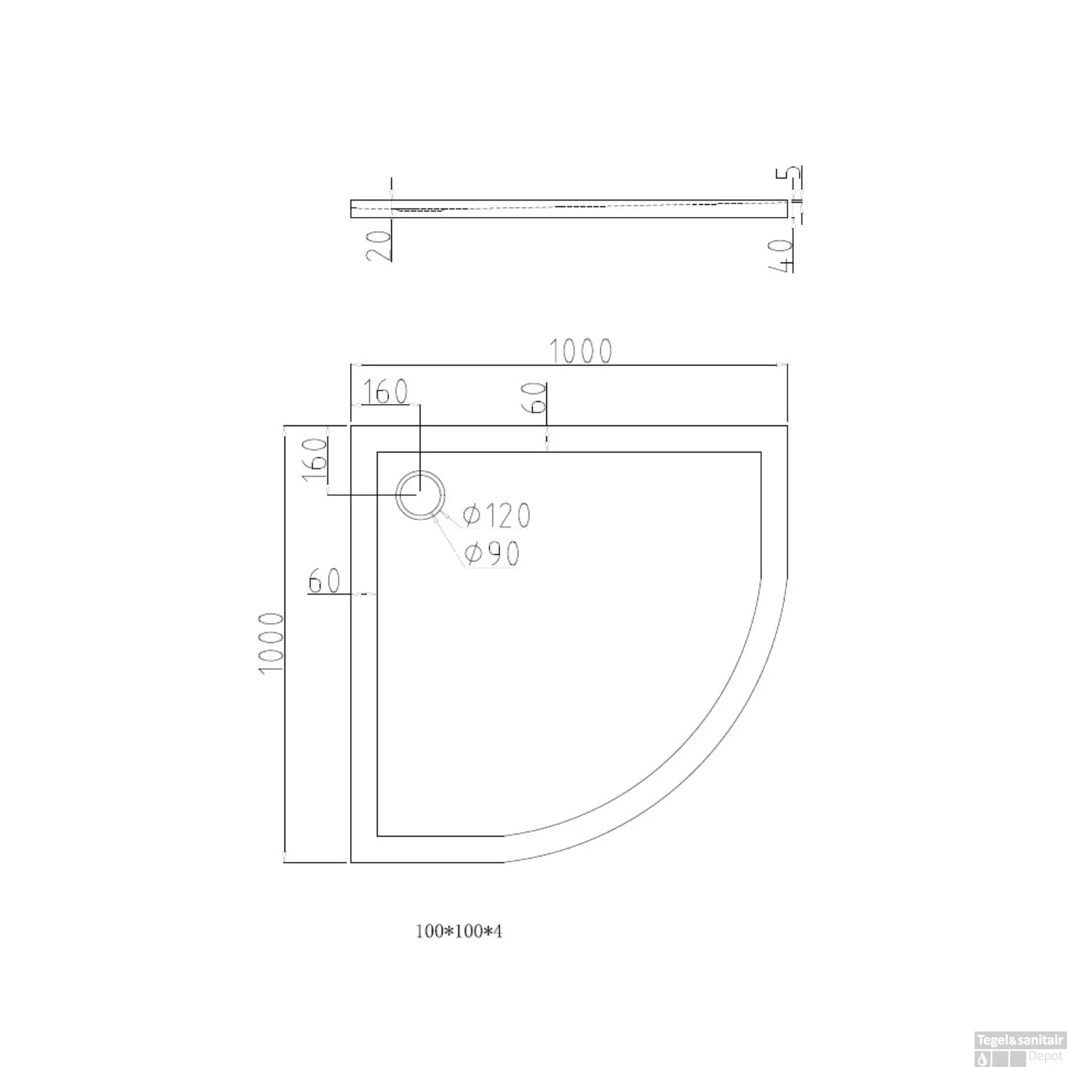 Douchebak Best Design Radius 550 Kwart rond 100x100x4cm