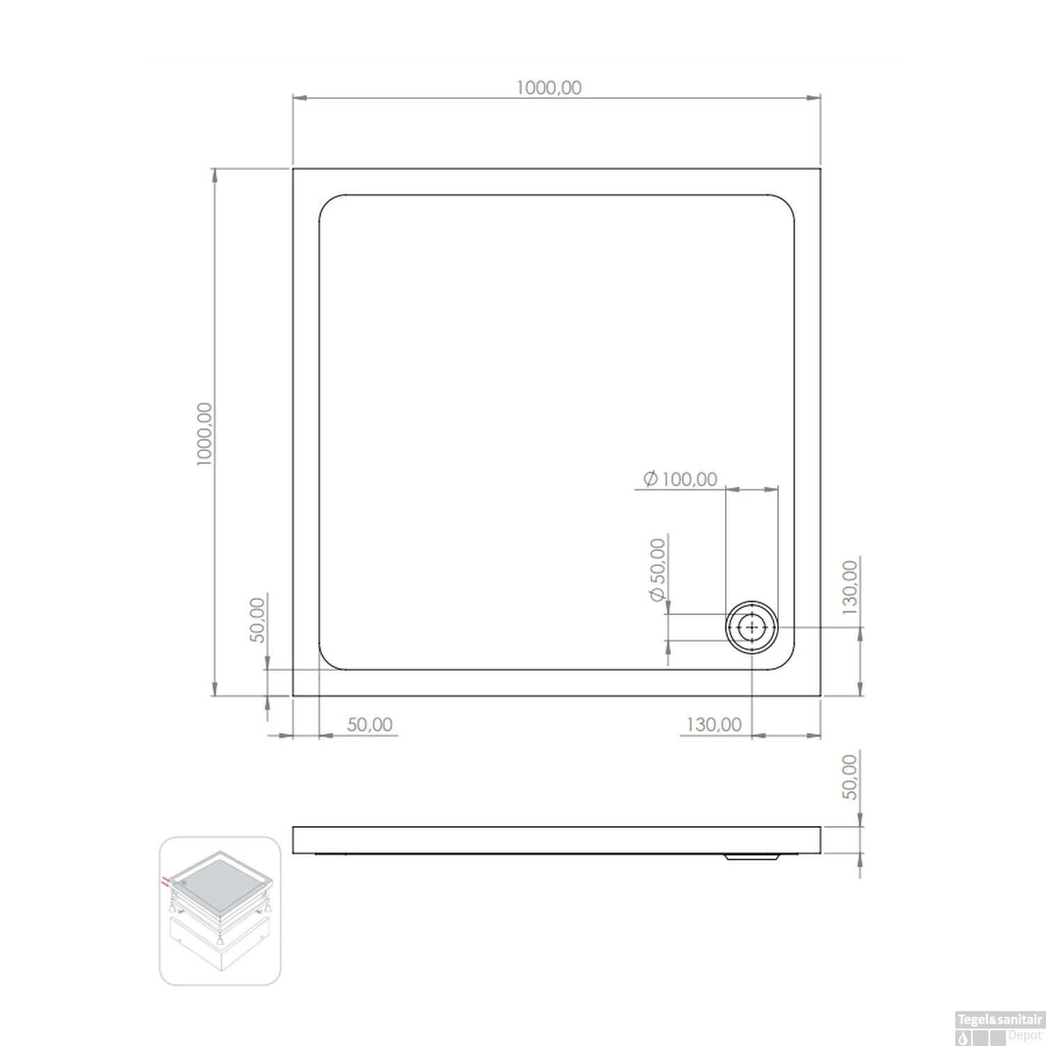Specificaties Douchebak Boss & Wessing Veroni Vierkant 100x100cm Acryl Wit