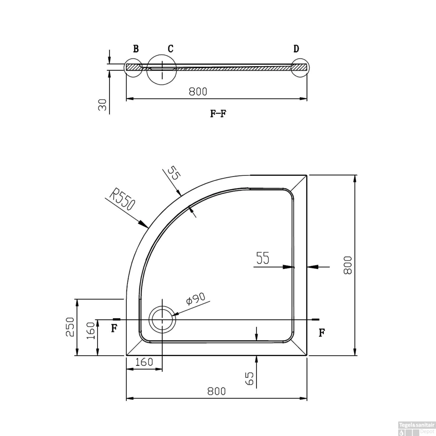 - – Diameter afvoer: 9 cm