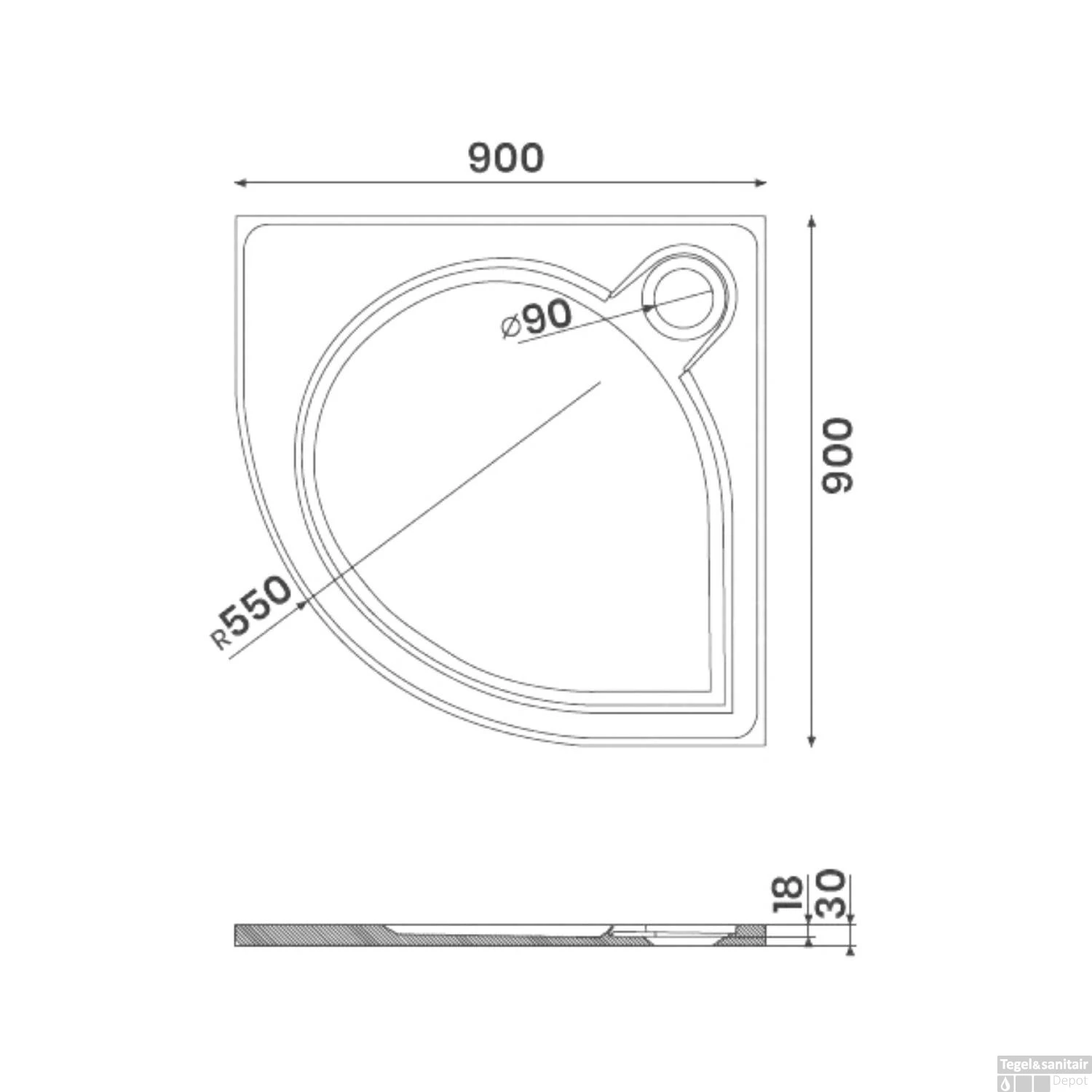 - – Diameter afvoer: 9 cm