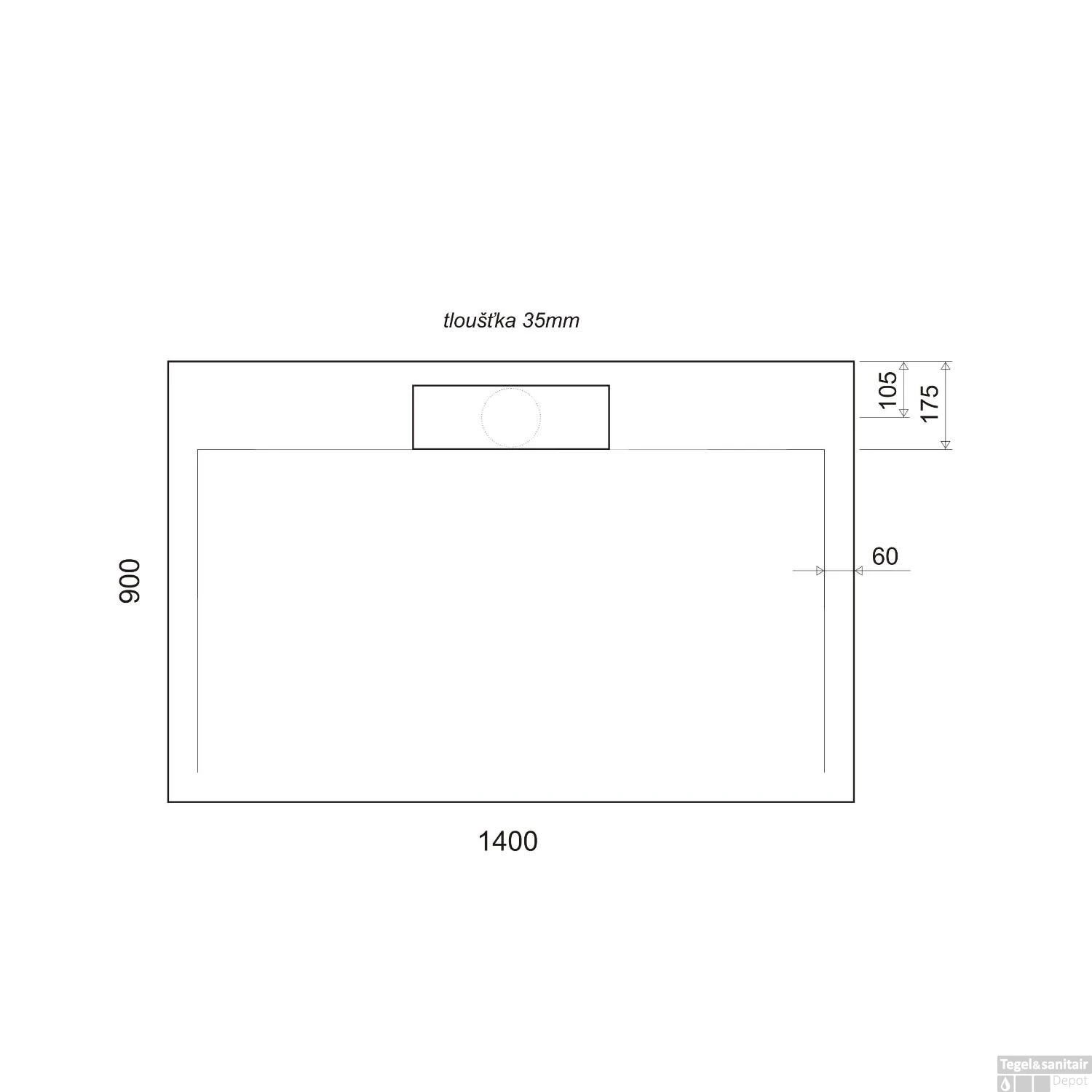 Specificaties Douchebak Gegoten Marmer 140x90x3.5 cm Rechthoek Wit Sapho Irena:
