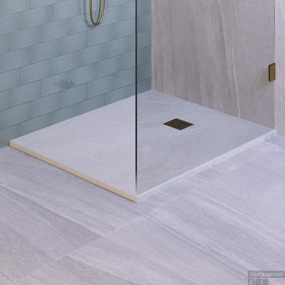 Een stijlvolle en zeer dunne douchebak gemaakt van hoogwaardig mineraalmarmer (ook wel polybeton of kunstmarmer). Mineraalmarmer staat bekend om zijn onderhoudsvriendelijke en duurzame eigenschappen. De douchevloer is antibacterieel, beschikt over anti-slip en heeft een hoge resistentie voor chemicaliën en verkleuring door UV-licht. De douchebak beschikt over een subtiele steen textuur met een natuurlijke uitstraling en is verkrijgbaar in het mat wit en mat zwart.