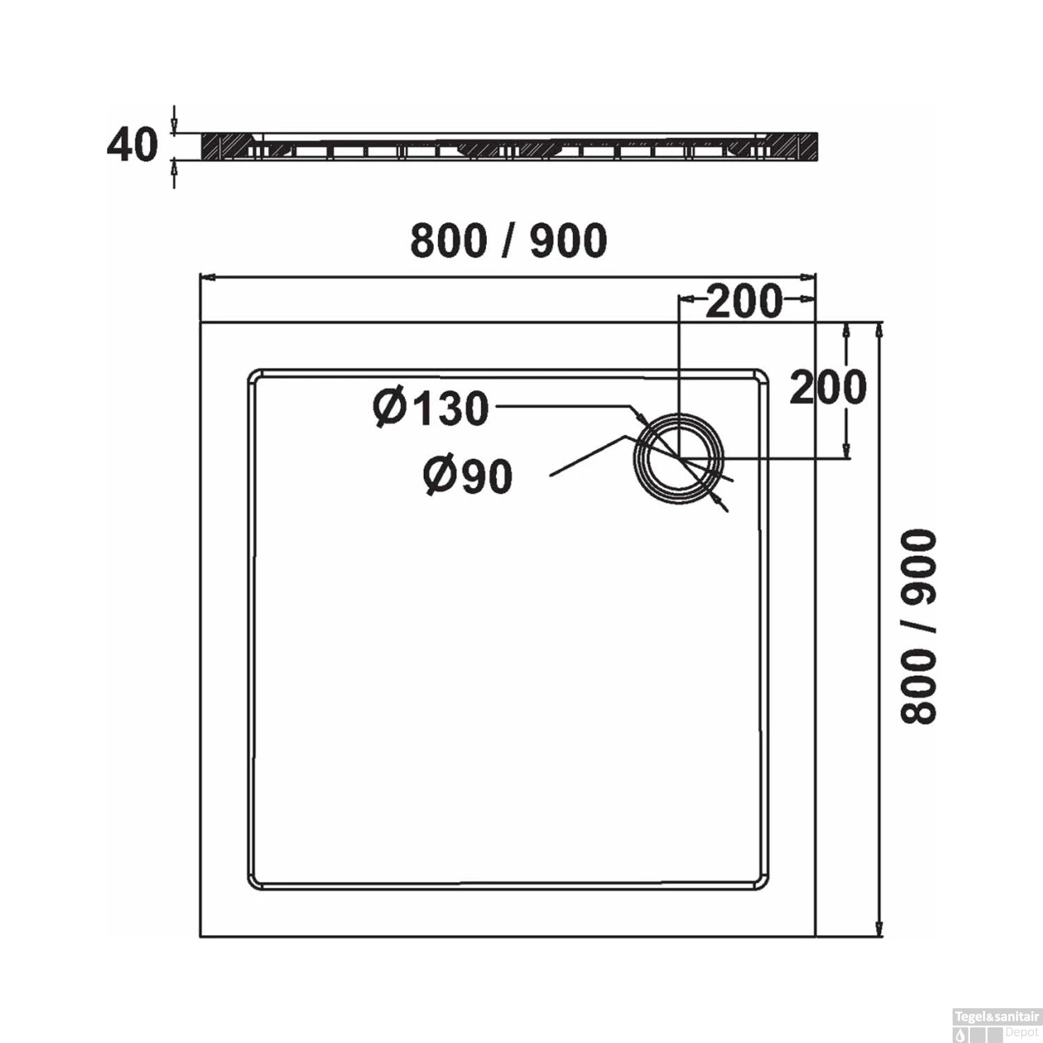 - – Vierkant 80×80 cm