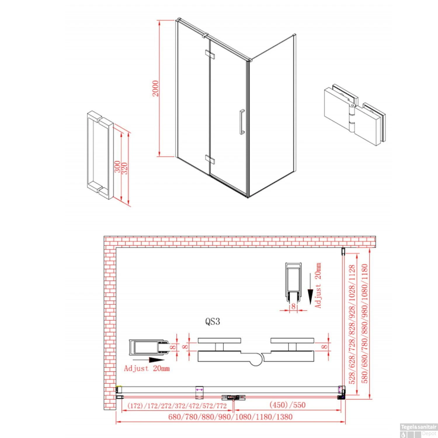 De P&C Design douchecabine heeft verschillende breedtecombinaties. Hierdoor kunt u uw eigen douchecabine samenstellen in de juiste maat. De cabine is voorzien van een klapdeur en een zijwand die samen een complete douchecabine vormen. De deur is te verkrijgen in de maten 90cm, 100 cm, 120 cm en 140 cm breed. De zijwanden waar u uit kunt kiezen zijn 80 cm en 90 cm breed.