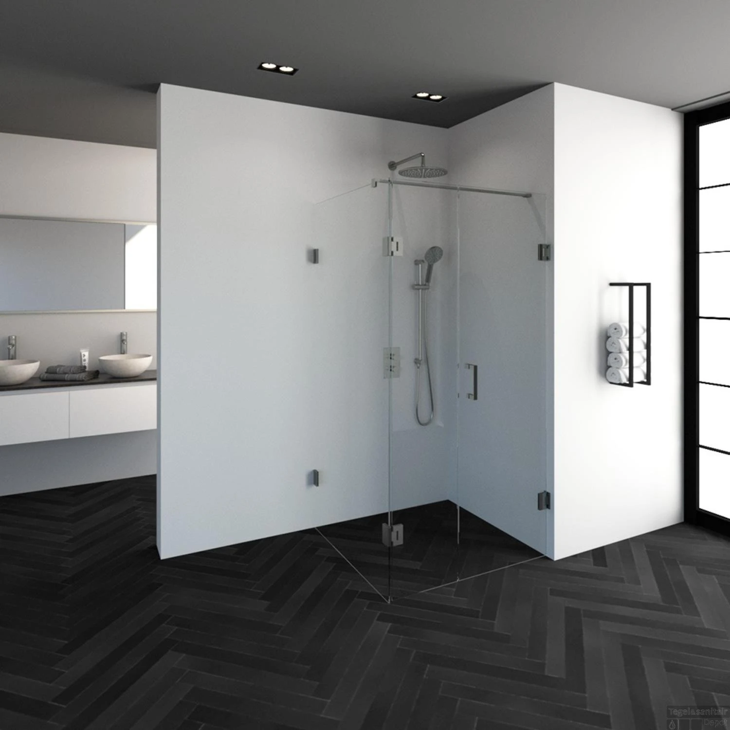 Deze complete douchecabine bestaat uit een inloopwand, zijwand en draaideur en RVS beslag. Inclusief glasbehandeling en optionele kunststof profielen. De hoogte van de douchecabine is 200 cm. De cabine is 97,7 cm breed en 98,8 cm diep. Deze douchecabine straalt luxe uit door zijn design en kleur.