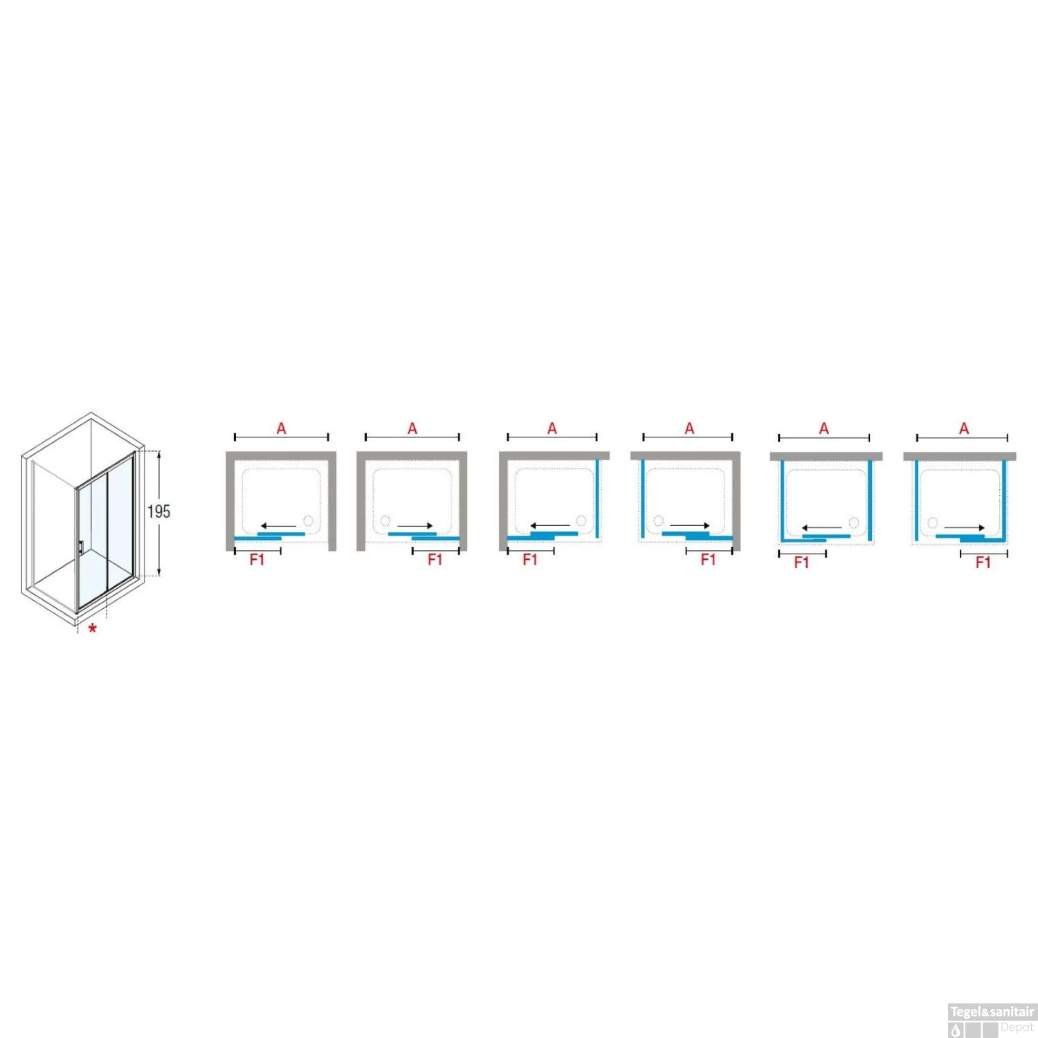 De schuifdeur van de Zephyros douchecabine kent een breedte van 156 en een hoogte van 195 cm. Bovendien is de deur in breedte verstelbaar tot en met 162 cm. De zijwand is leverbaar in acht verschillende breedtes van 68 t/m 118 cm. De zijwanden hebben een verstelbaarheid van 3 cm. De douchecabine is geschikt voor zowel plaatsing op de tegelvloer als op een douchebak.