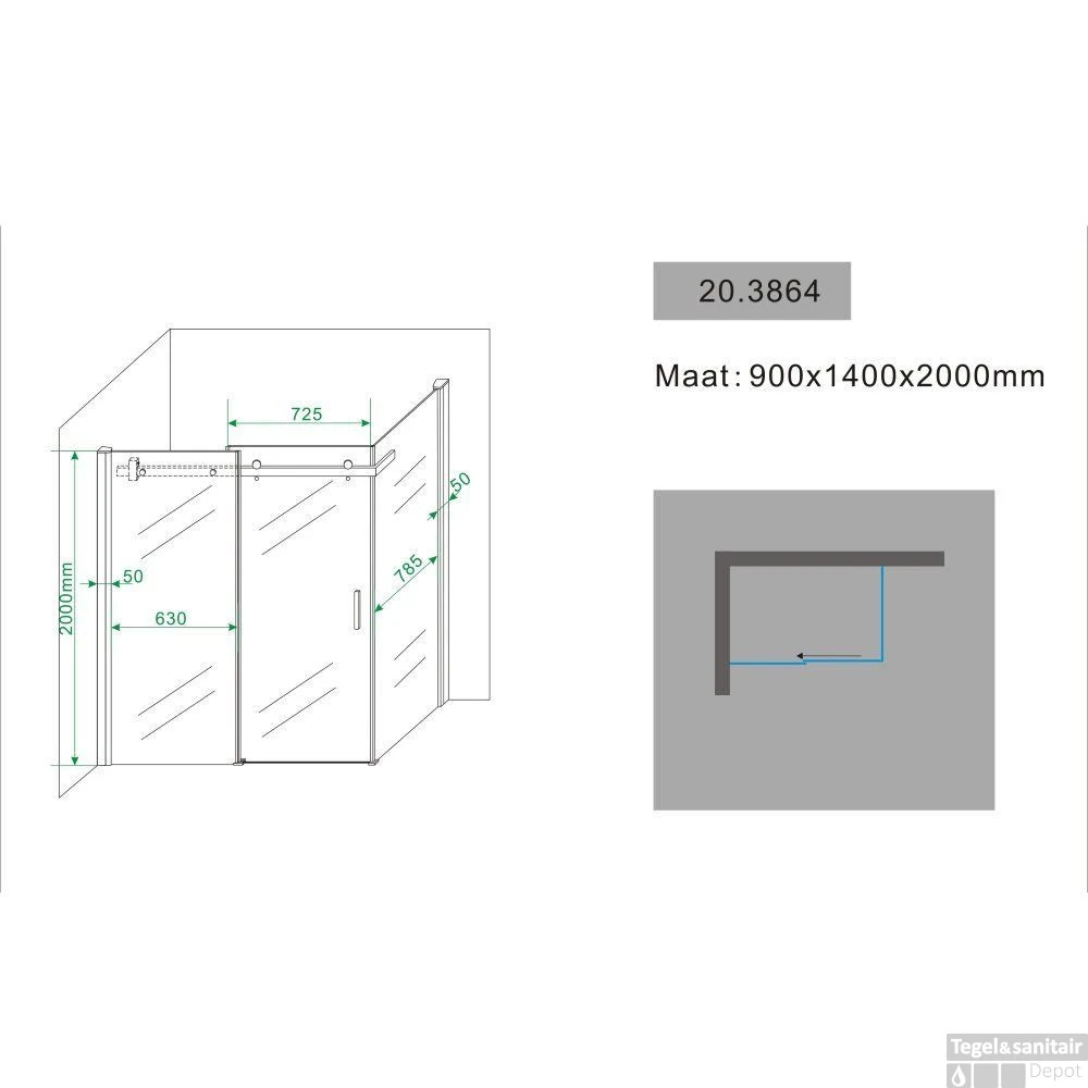 LET OP: Omdat de cabine ook op een douchebak te plaatsen is zijn de afmetingen 2 á 3 cm kleiner als aangegeven op de specificaties