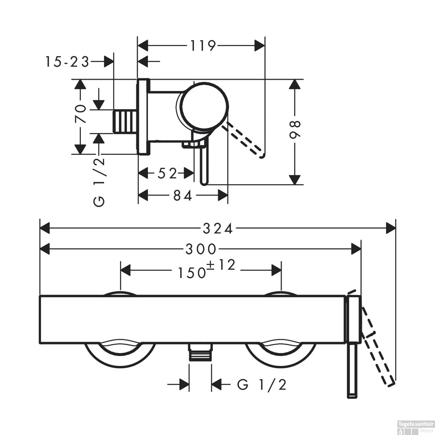 Specificaties Douchekraan Opbouw Finoris HansGrohe Eengreeps Chroom: