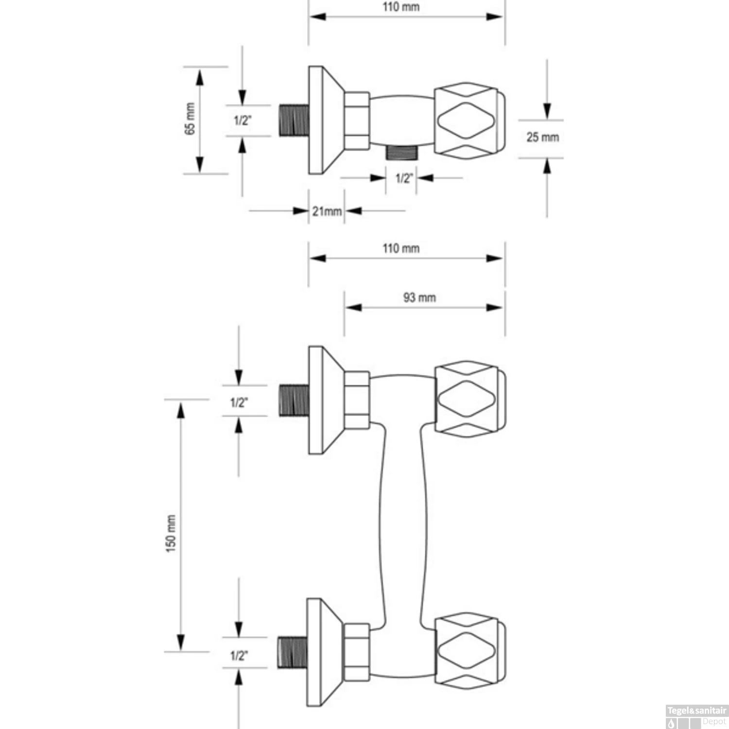 - Draadaansluiting douche: 1/2″