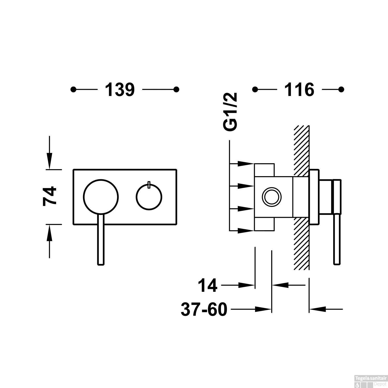 - Afbouwdeel breedte: 13,9 cm