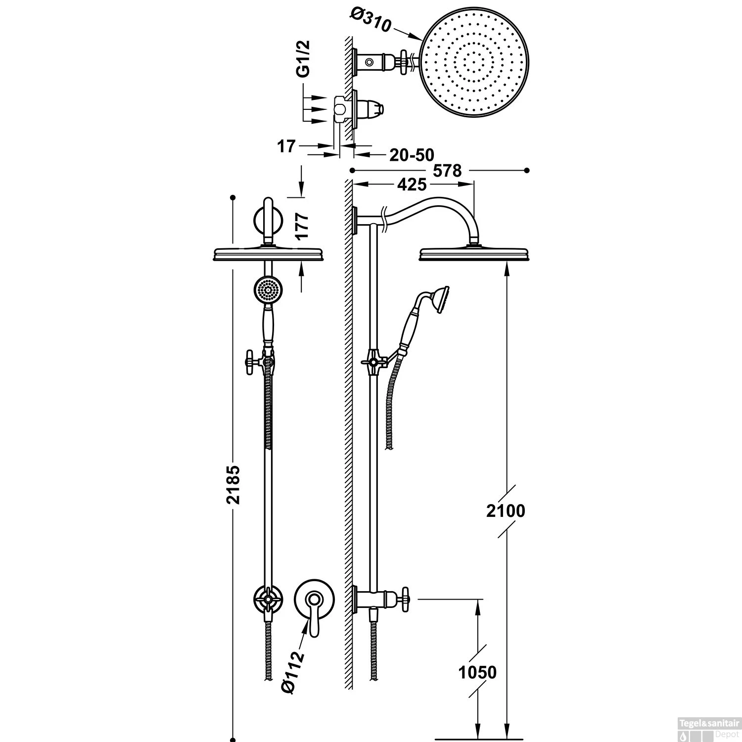 - Diameter hoofddouche: 31 cm