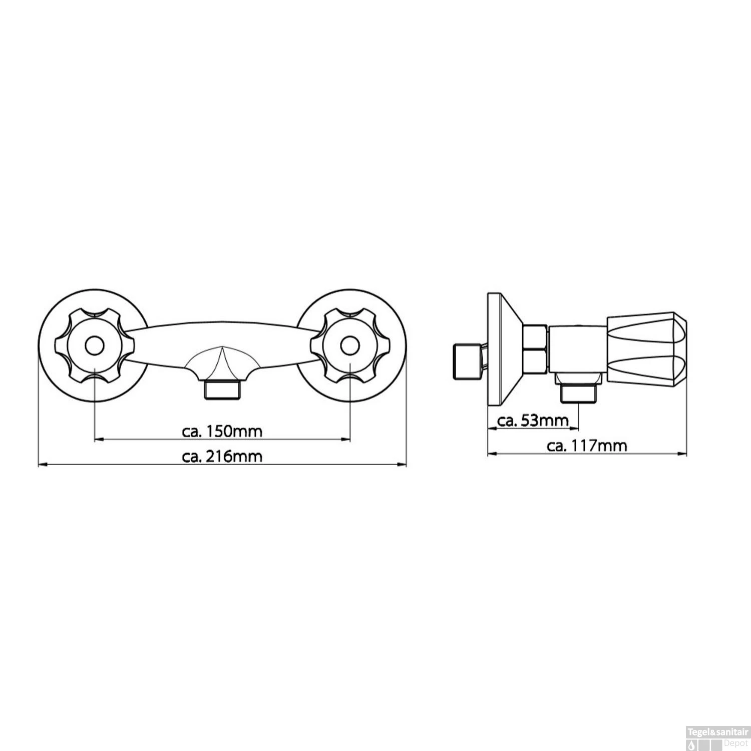 De Savino douchemengkraan van het merk Schutte is gemaakt van metaal en heeft een chromen afwerking. De douchekraan heeft twee grepen waarmee de temperatuur van het water naar wens geregeld kan worden.De kraan wordt met een verbinding voor een doucheslang met een diameter van circa 1,9 cm (1/2”) geleverd.