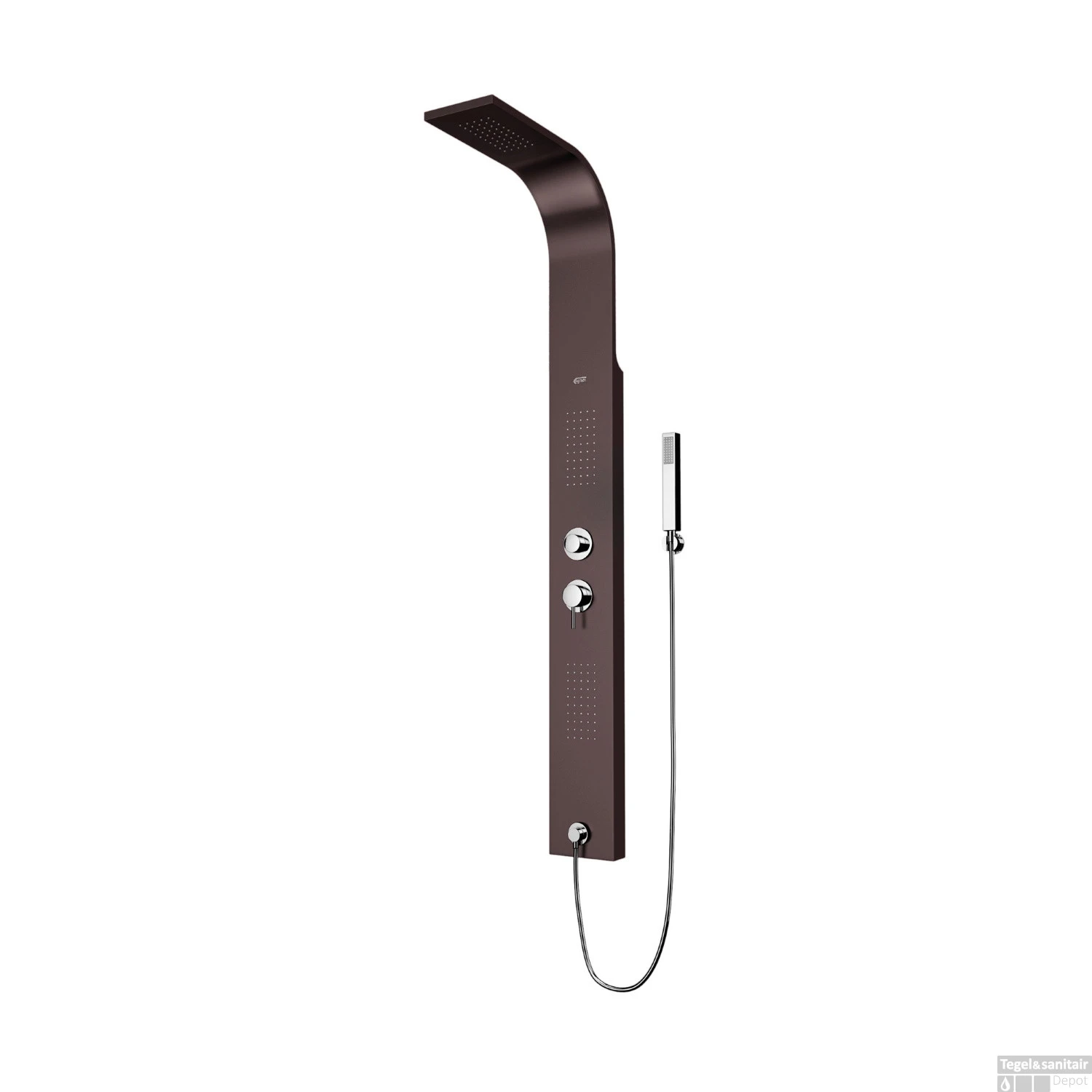 Dit bijzondere douchepaneel is gemaakt van roestvrij staal en heeft een afwerking in de kleur gepolijst staal. Verder is het paneel voorzien van een doucheslang en een handdouche. Naast een variant in de kleur gepolijst staal is het Spargi douchepaneel ook leverbaar in de kleuren gepolijst chroom, geborsteld staal, mat wit en mat zwart.