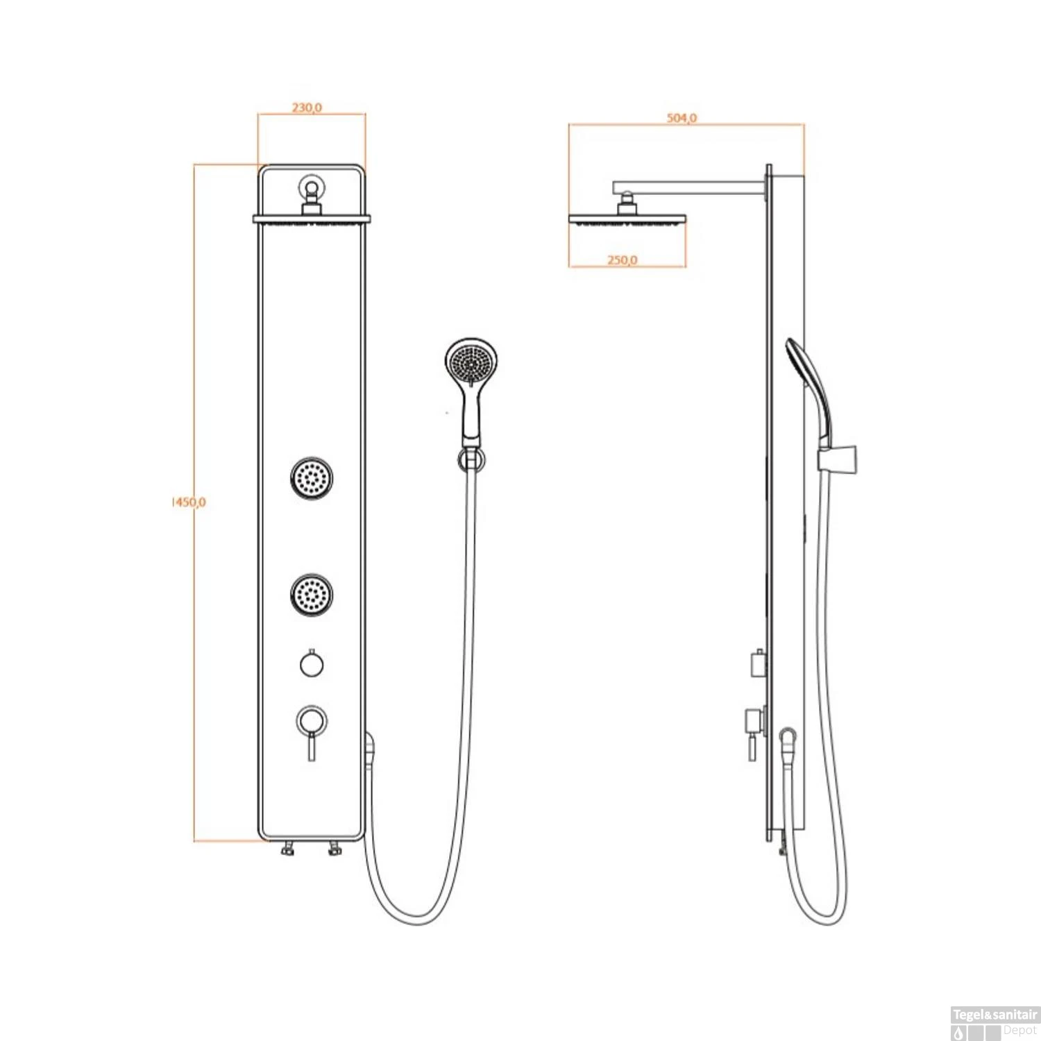De twee massagesproeiers die zich op het product bevinden kunnen handmatig aan worden gezet en geven extra comfort. Het douchepaneel is aan de zijkanten afgedekt, zodat het een mooi geheel vormt.