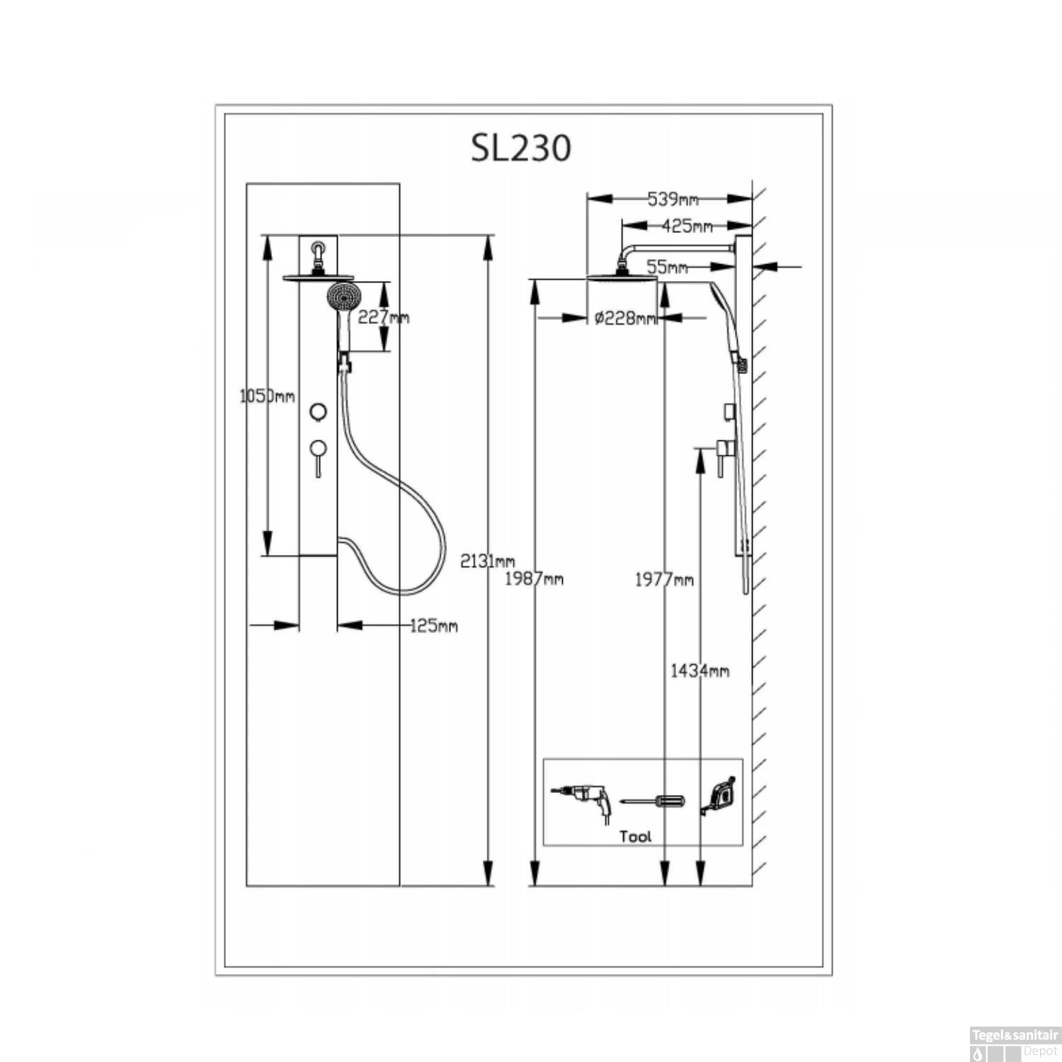 Specificaties Douchepaneel 105×12.5 cm met Mengkraan Wit Sapho Figa: