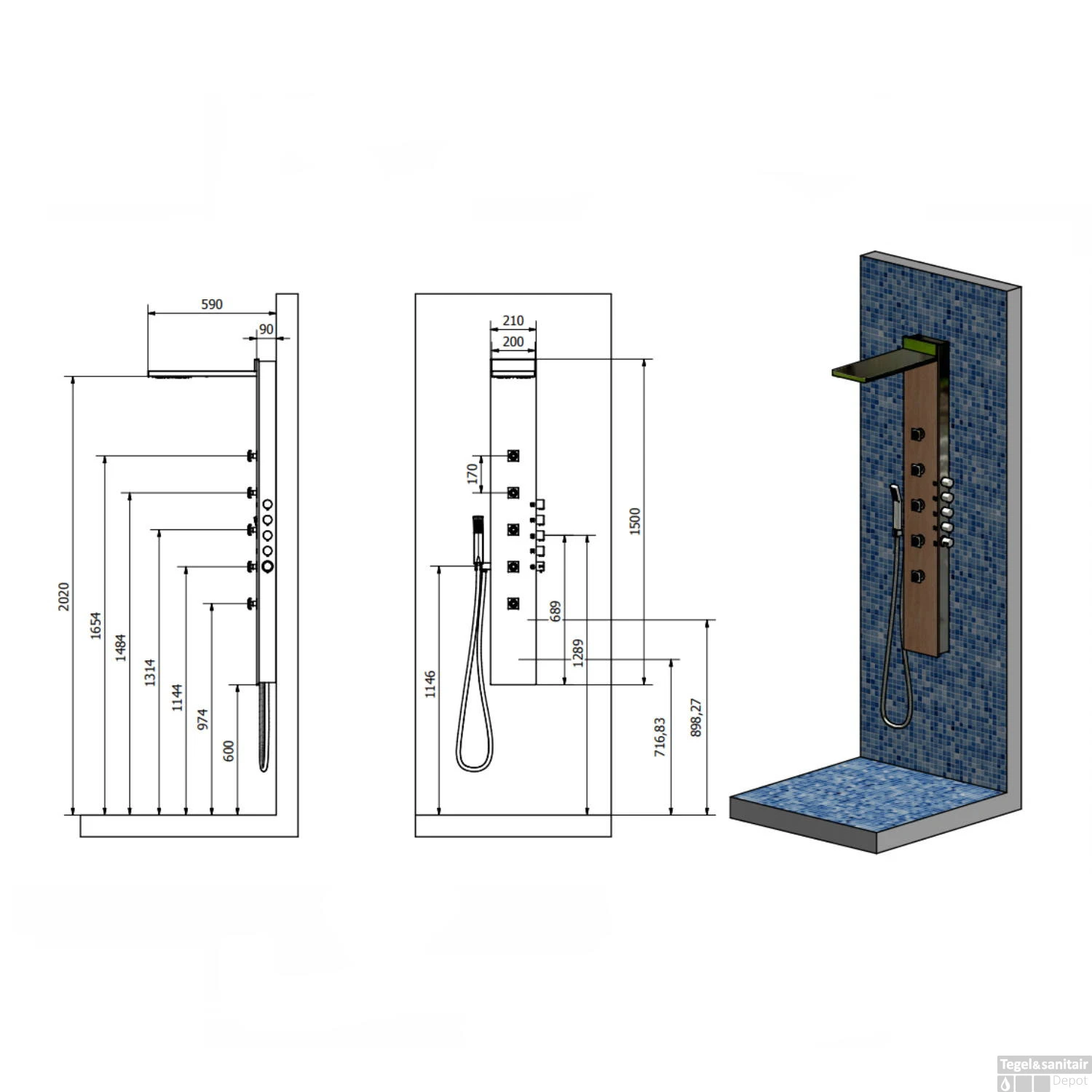 Specificaties Douchepaneel 150×21 cm Thermostatisch Vierkant Aluminium Sapho Soul 200: