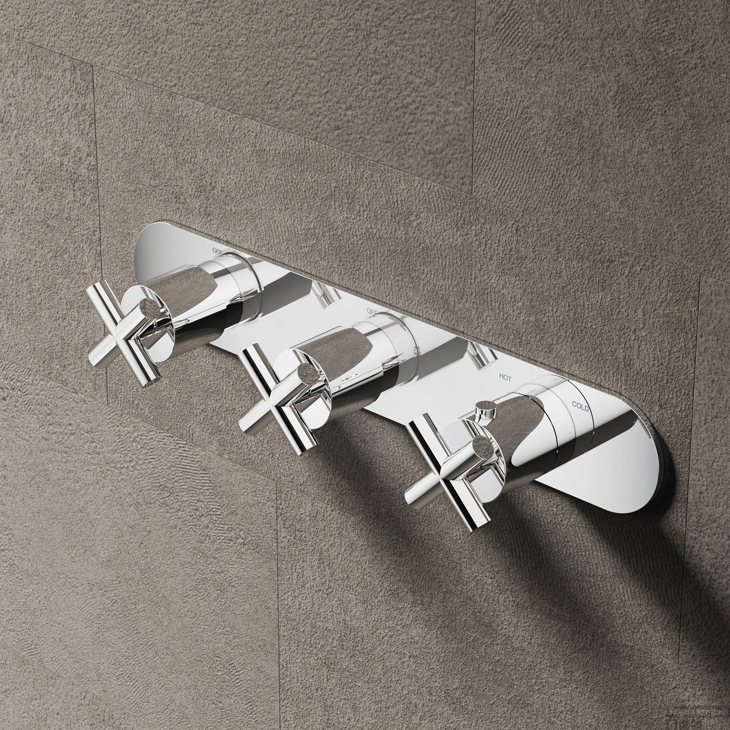 De douchethermostaat heeft een chromen kleur en is een duurzaam oppervlaktemateriaal dat goed bestand is tegen krassen. Het toepassen van chroom op messing geeft een bijzondere uitstraling die luxe en duurzaamheid uitstraalt.
