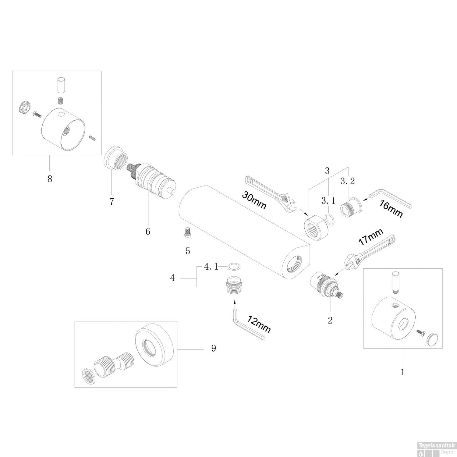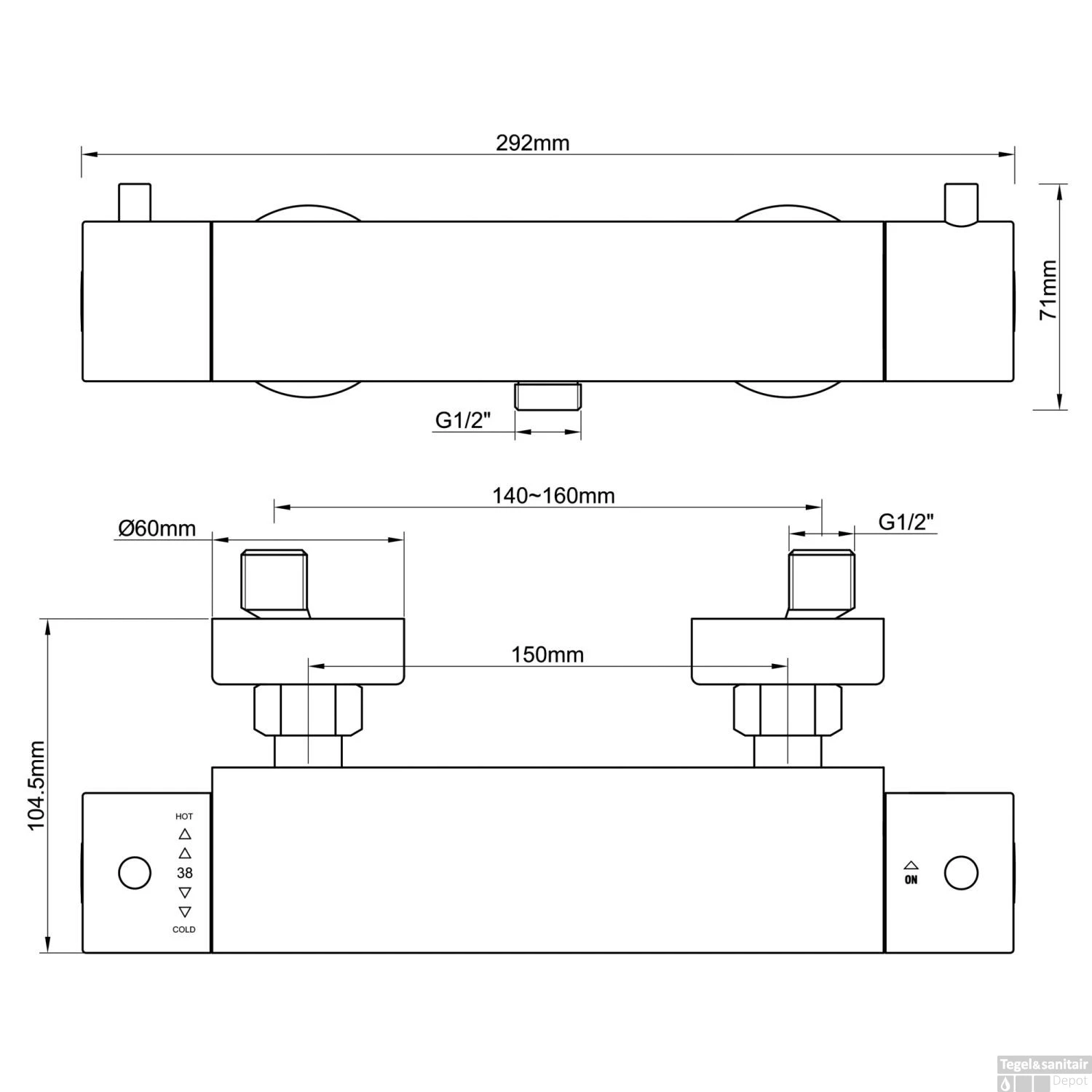 Deze douchethermostaat bedient u met twee draaiknoppen. Met de ene knop draait u de kraan open en dicht en met de andere knop bepaalt u de temperatuur. De kraan is van messing in RVS look. Hij heeft een lengte van 29,2 cm en een diepte van 10,45 cm.