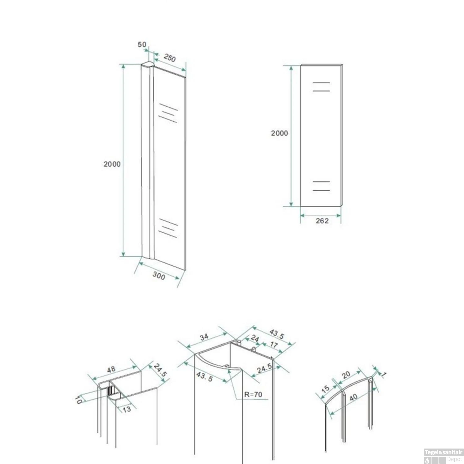 LET OP: Omdat de inloopdouche ook op een douchebak te plaatsen is zijn de afmetingen 2 á 3 cm kleiner als aangegeven op de specificaties