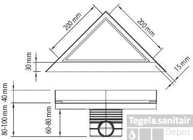 Delta douchegoot 3-hoek 20x20cm.zij-uitl.30-35-50