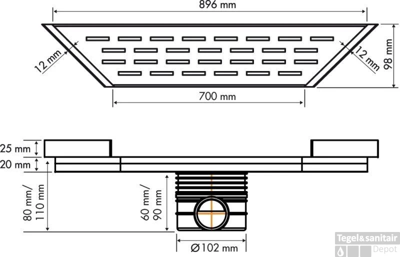 Easydrain Trapezium Multi Goot 70×89,6×9,8 Cm. Met Sifon Rvs