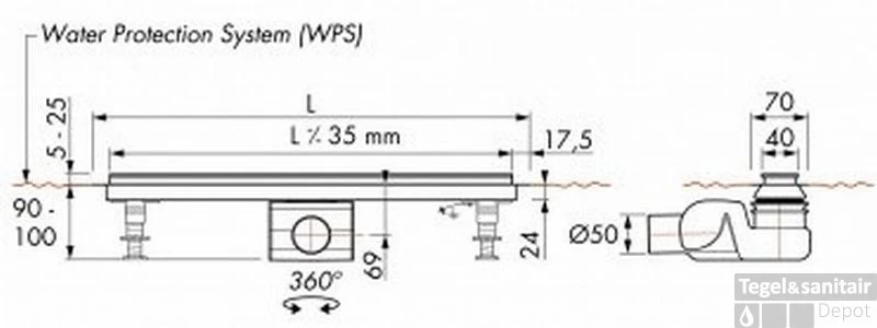 Easydrain Xs Nano Douchegoot 70 Cm. Waterslot 50 Rvs Geborsteld