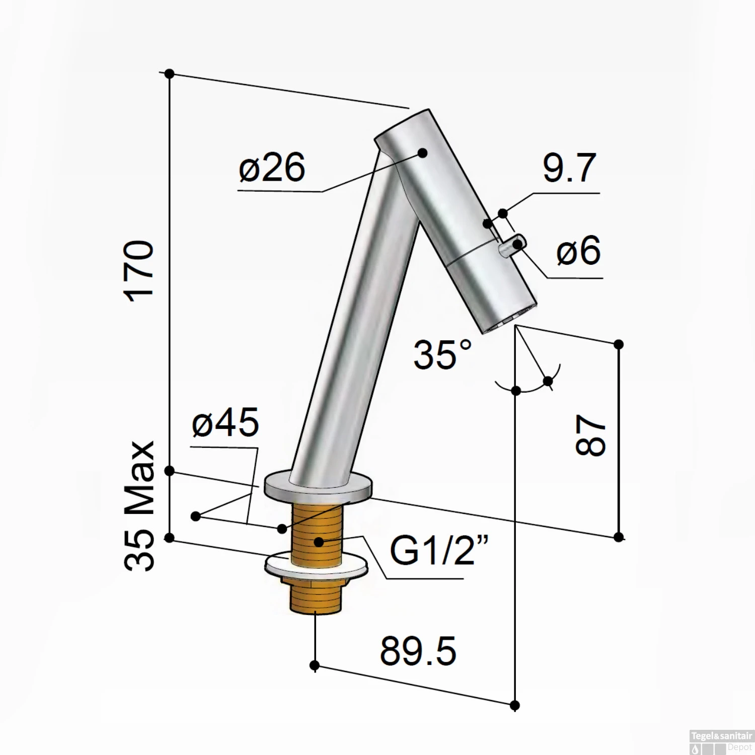- Hoogte uitloop: 8.7 cm