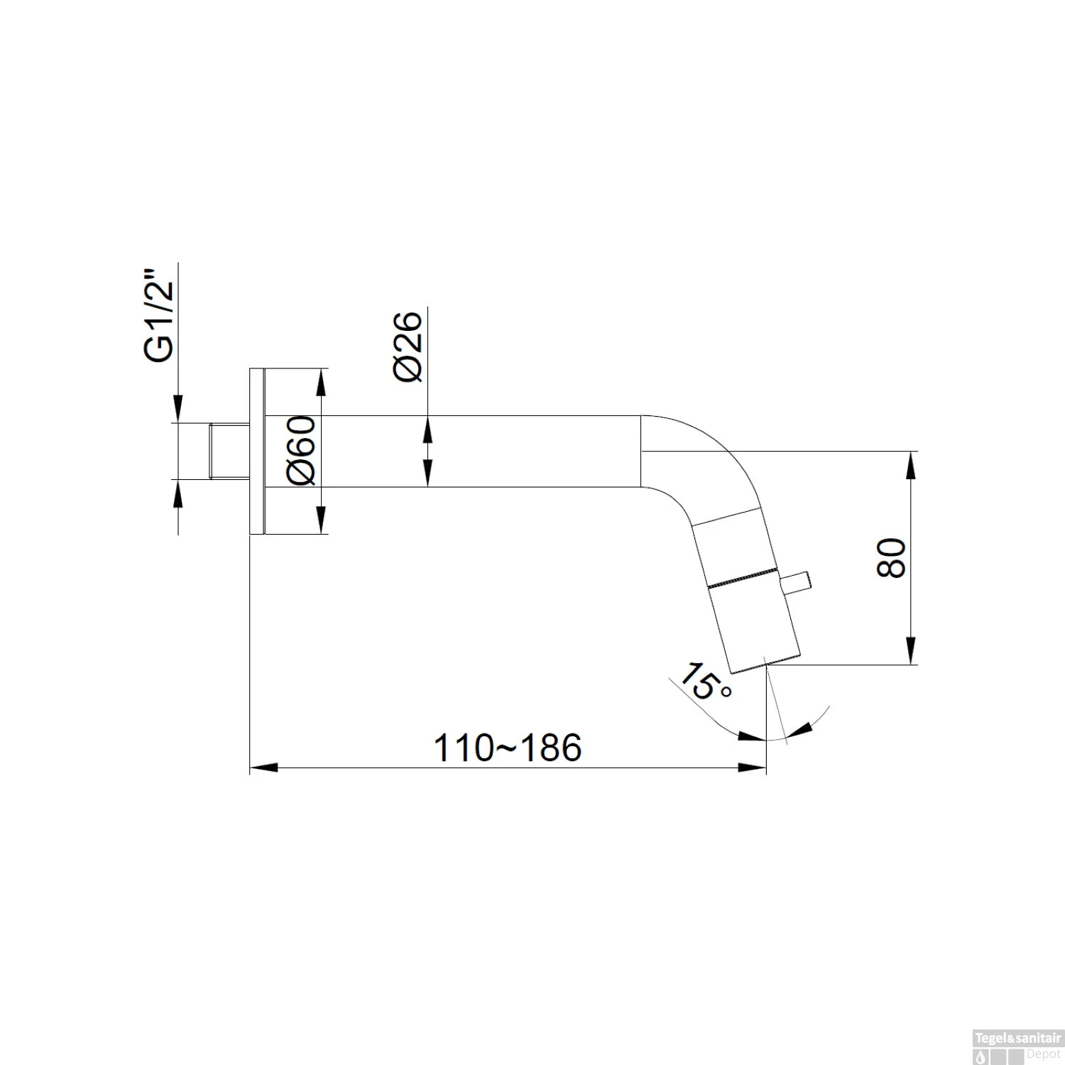 De kraan is inkortbaar van 18.6 cm tot 11 cm. Een inbouwbox is niet vereist. U draait de meegeleverde koppeling in uw muurplaat en sluit hier de uitloop op aan.