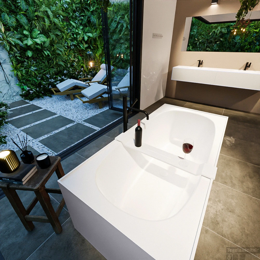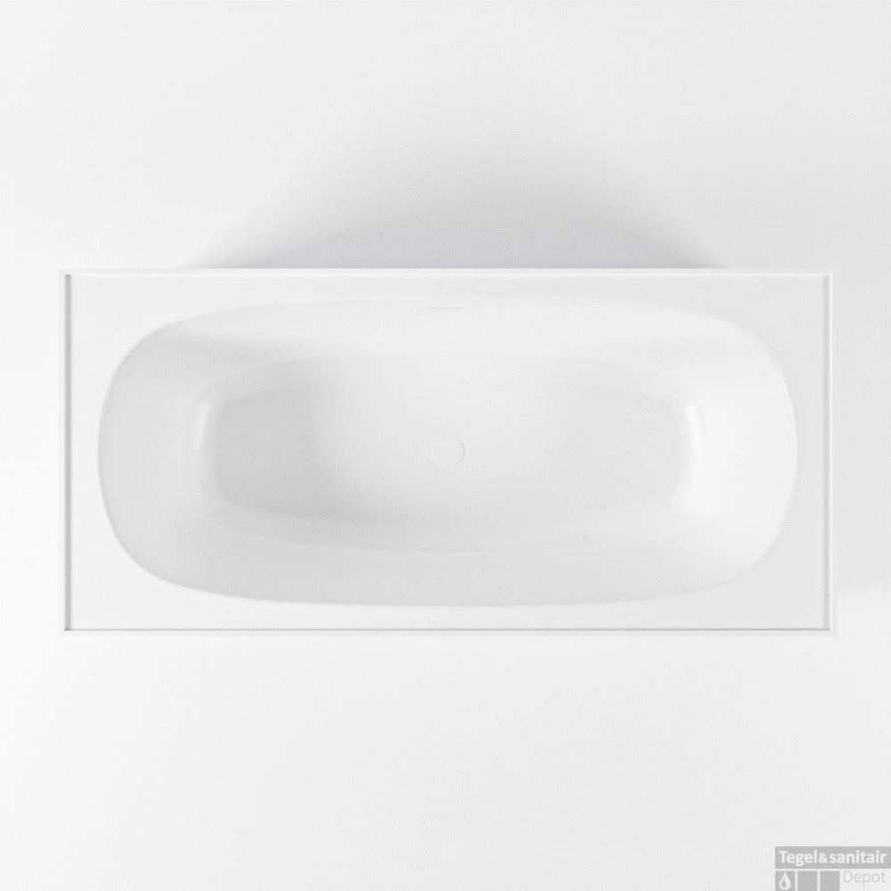 Het heeft strakke lijnen rondom waardoor het bad zowel vrijstaand, half vrijstaand als in een hoek te plaatsen is.Deze prachtige badkamer opstelling is gecombineerd met de serie lagom. Dit is een volledig Solid Surface badmeubel en kolomkast die qua kleur precies is af te stemmen op uw bad.