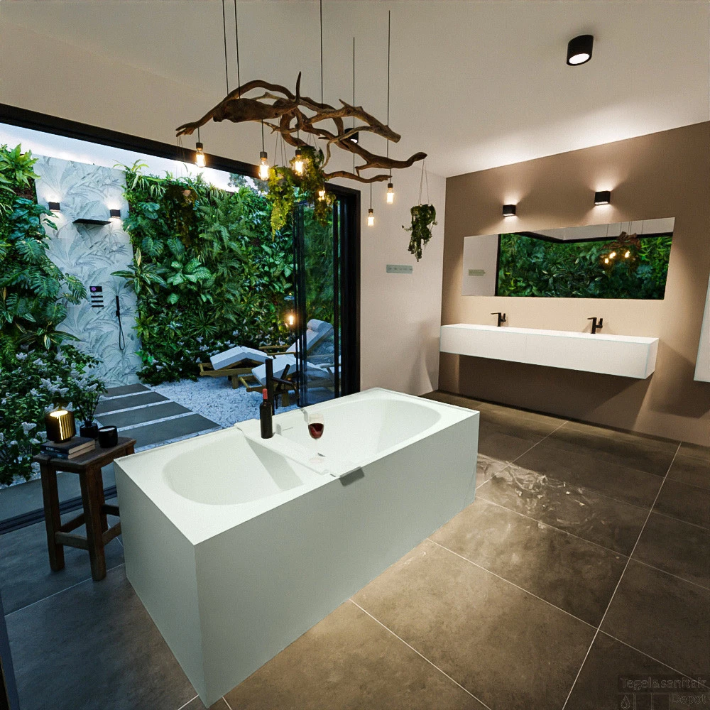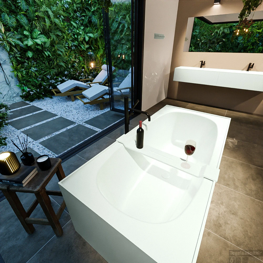 Het heeft strakke lijnen rondom waardoor het bad zowel vrijstaand, half vrijstaand als in een hoek te plaatsen is.Deze prachtige badkamer opstelling is gecombineerd met de serie lagom. Dit is een volledig Solid Surface badmeubel en kolomkast die qua kleur precies is af te stemmen op uw bad.