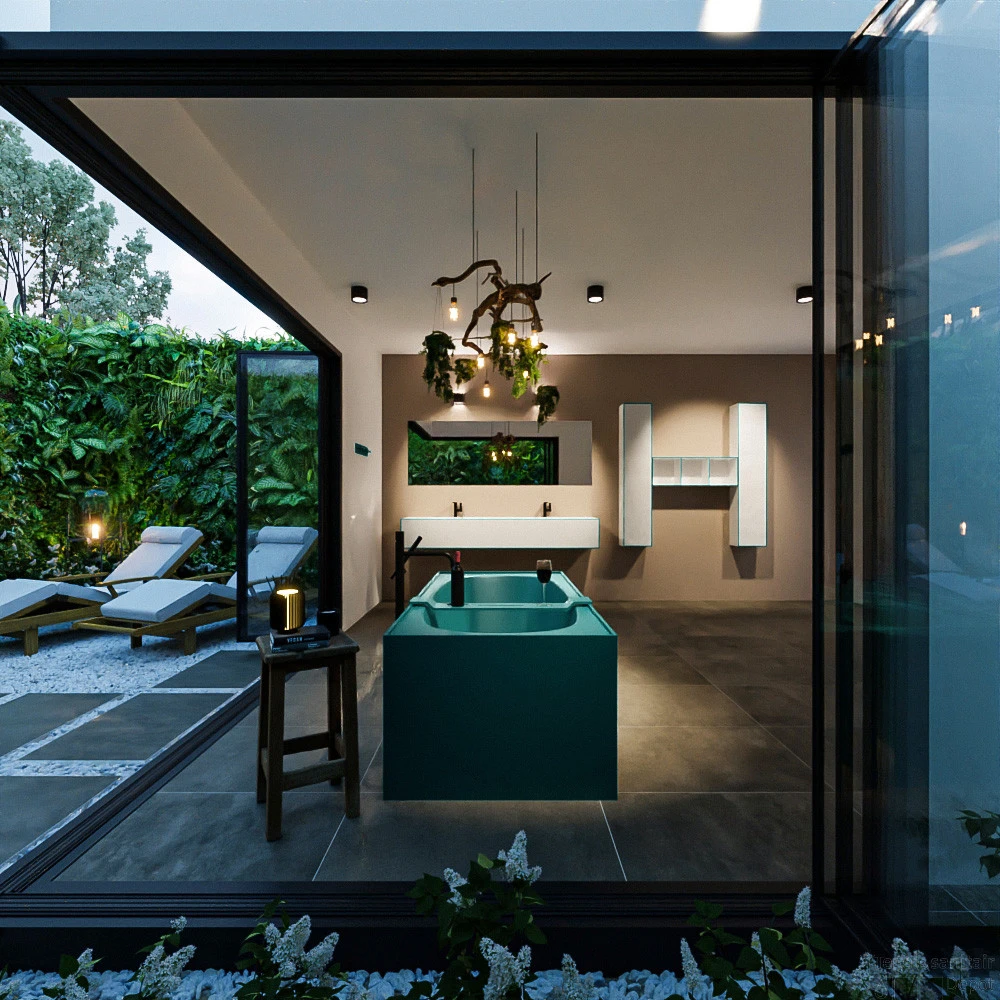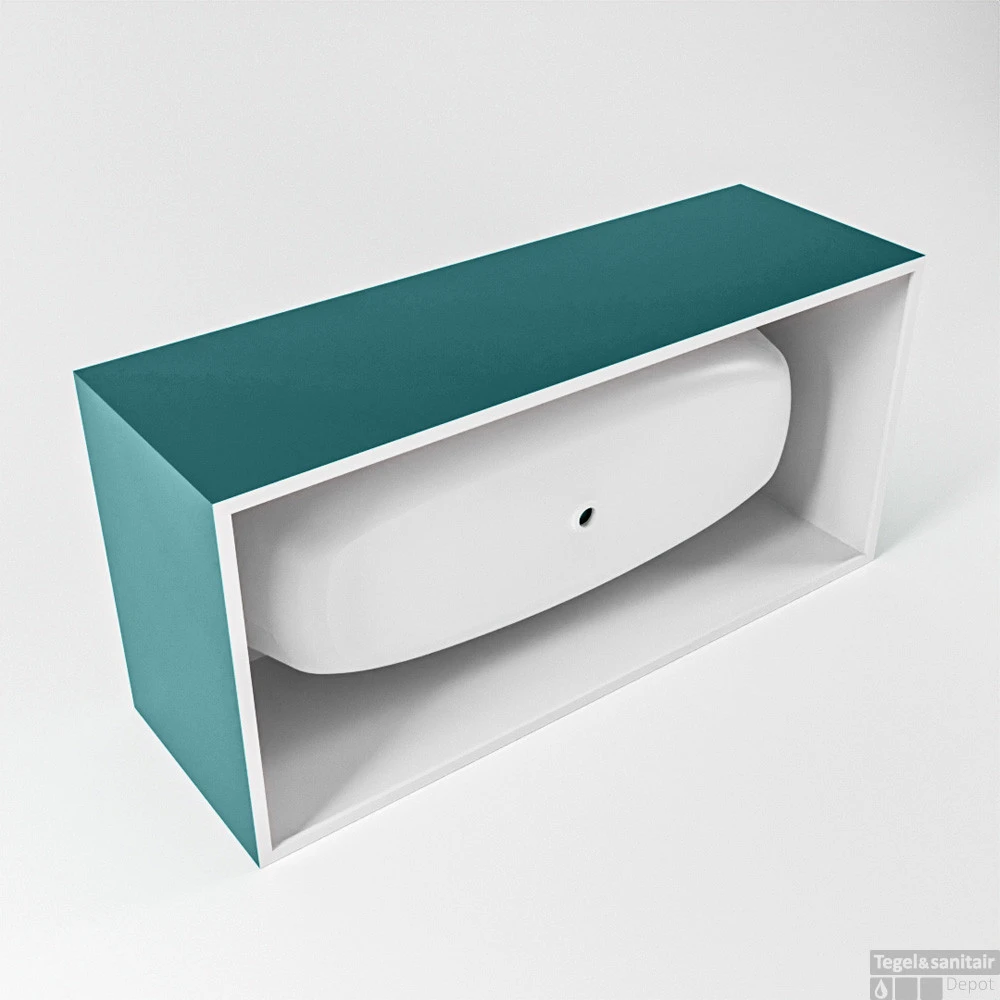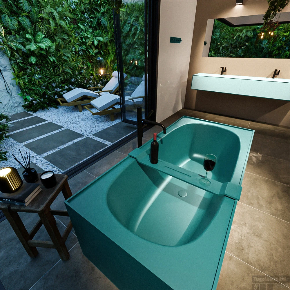 Het heeft strakke lijnen rondom waardoor het bad zowel vrijstaand, half vrijstaand als in een hoek te plaatsen is.Deze prachtige badkamer opstelling is gecombineerd met de serie lagom. Dit is een volledig Solid Surface badmeubel en kolomkast die qua kleur precies is af te stemmen op uw bad.