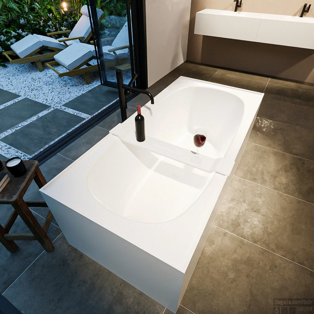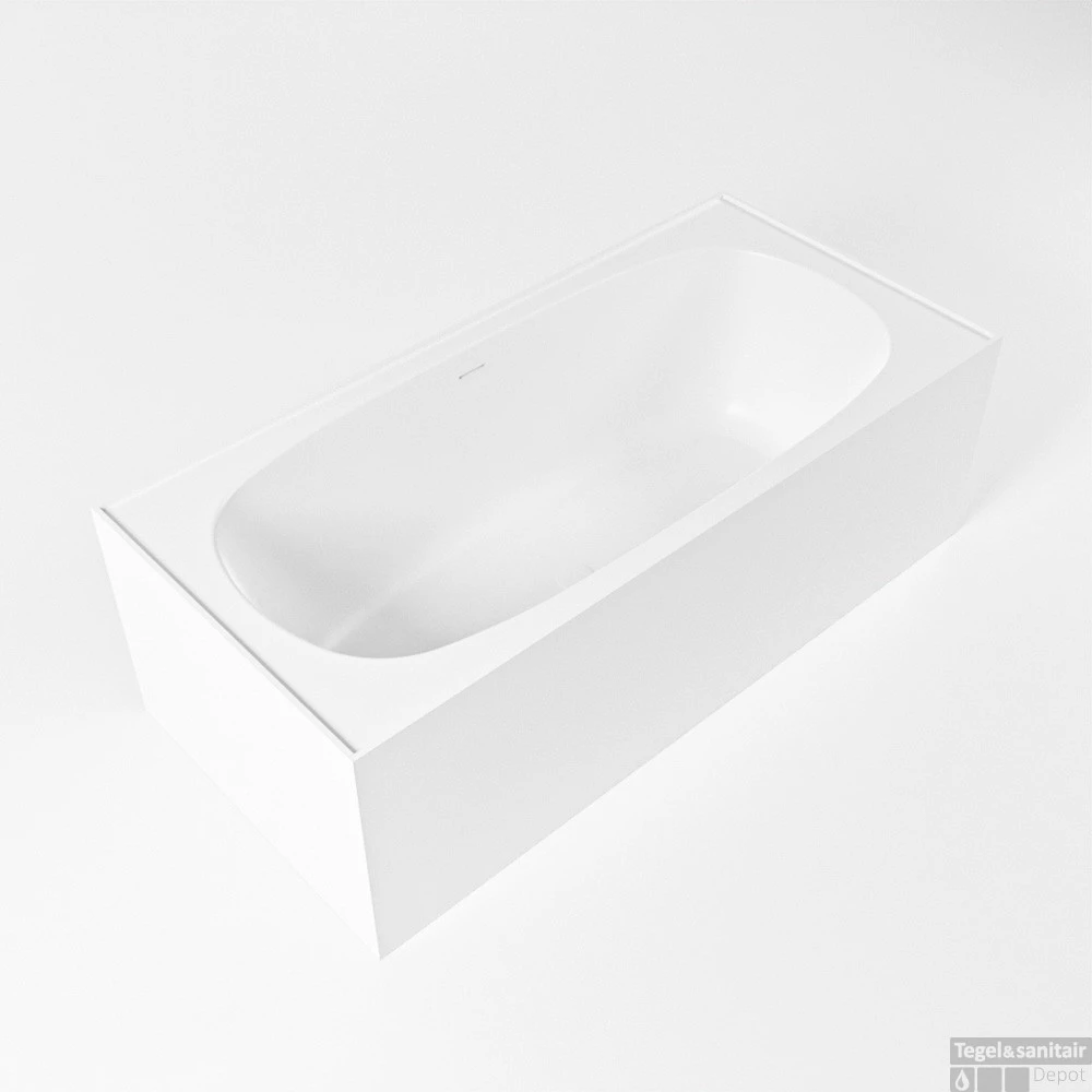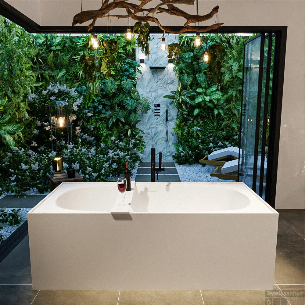 Het heeft strakke lijnen rondom waardoor het bad zowel vrijstaand, half vrijstaand als in een hoek te plaatsen is.Deze prachtige badkamer opstelling is gecombineerd met de serie lagom. Dit is een volledig Solid Surface badmeubel en kolomkast die qua kleur precies is af te stemmen op uw bad.