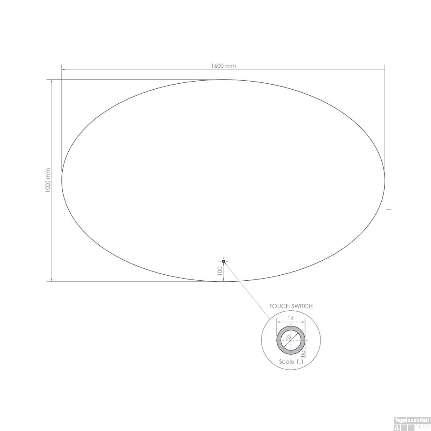 Specificaties Spiegel Gliss Oval LED Verlichting 100×160: