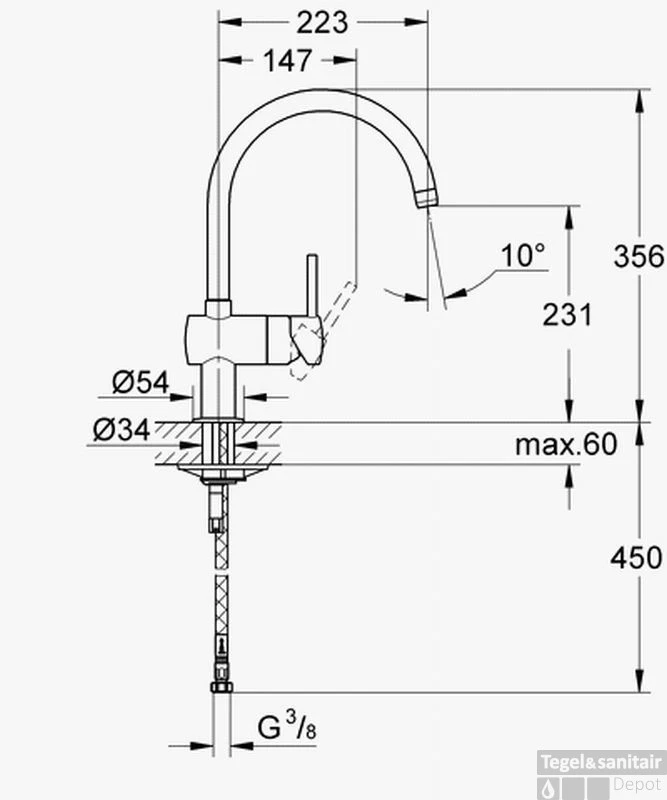 | Lengte uitloop (voorsprong) | 22.3 cm |