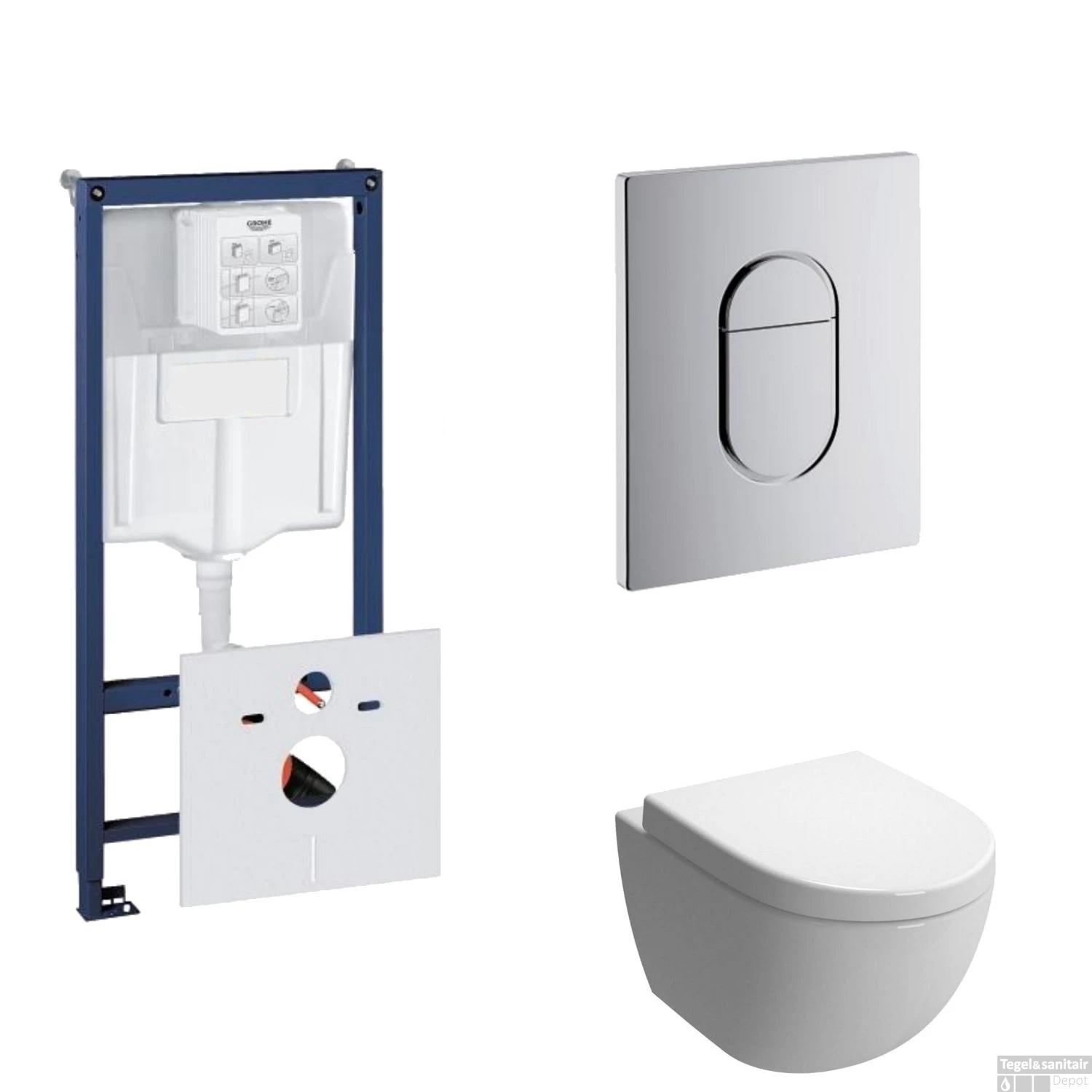 Inhoud Grohe Rapid SL Toiletset set14 B&W Zero Diepspoel met Grohe Arena of Skate drukplaat