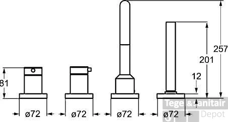 Afdekset 4-gats badrandcombinatie
