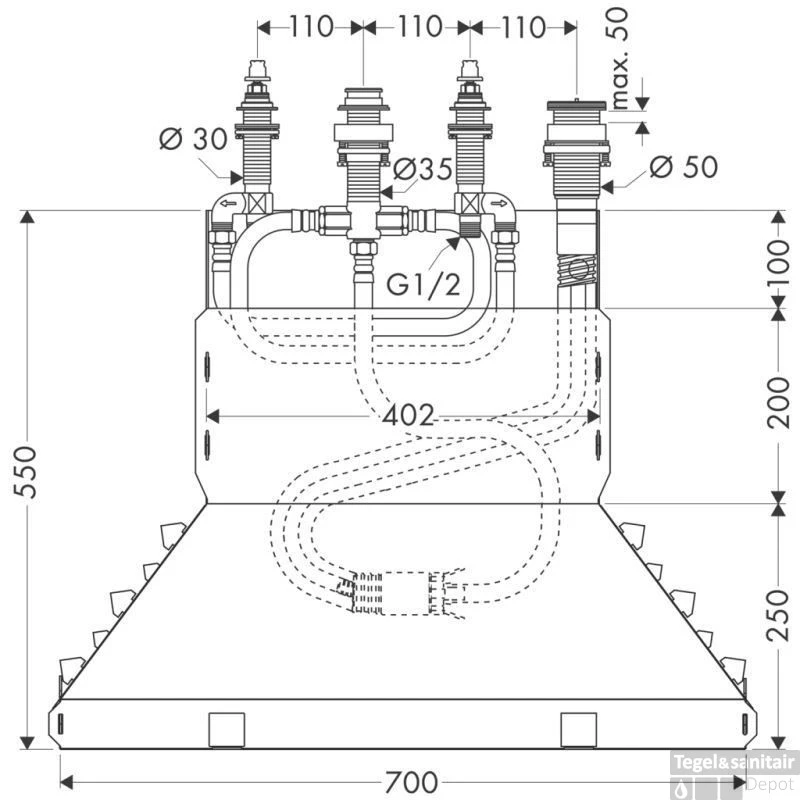 Hansgrohe Basisgarnituur 4-gats Badrandcombinatie