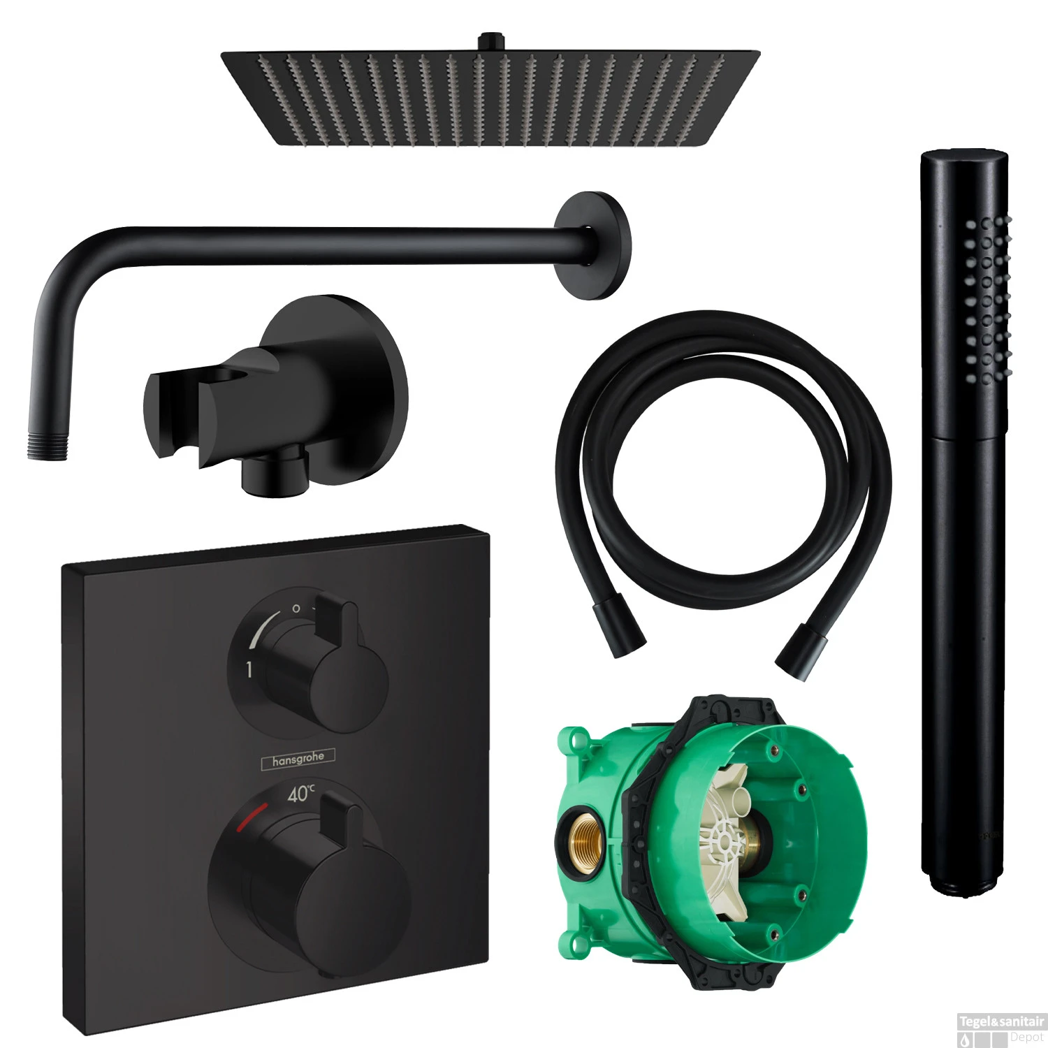 Specificaties: Hansgrohe Ecostat Regendoucheset Inbouw Wanduitloop met Handdouche en Hoofddouche 20cm Thermostaat Vierkant Zwart