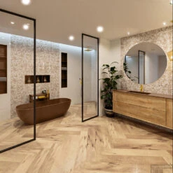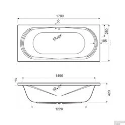 Let op de hoek van het bad zit rechts (zie technische tekeningen)