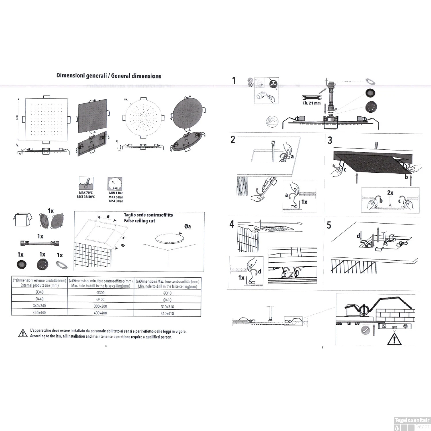 Specificaties Hoofddouche Belleza Bagno ClipOn Inbouw Regendouche Vierkant 34×34 cm Chroom