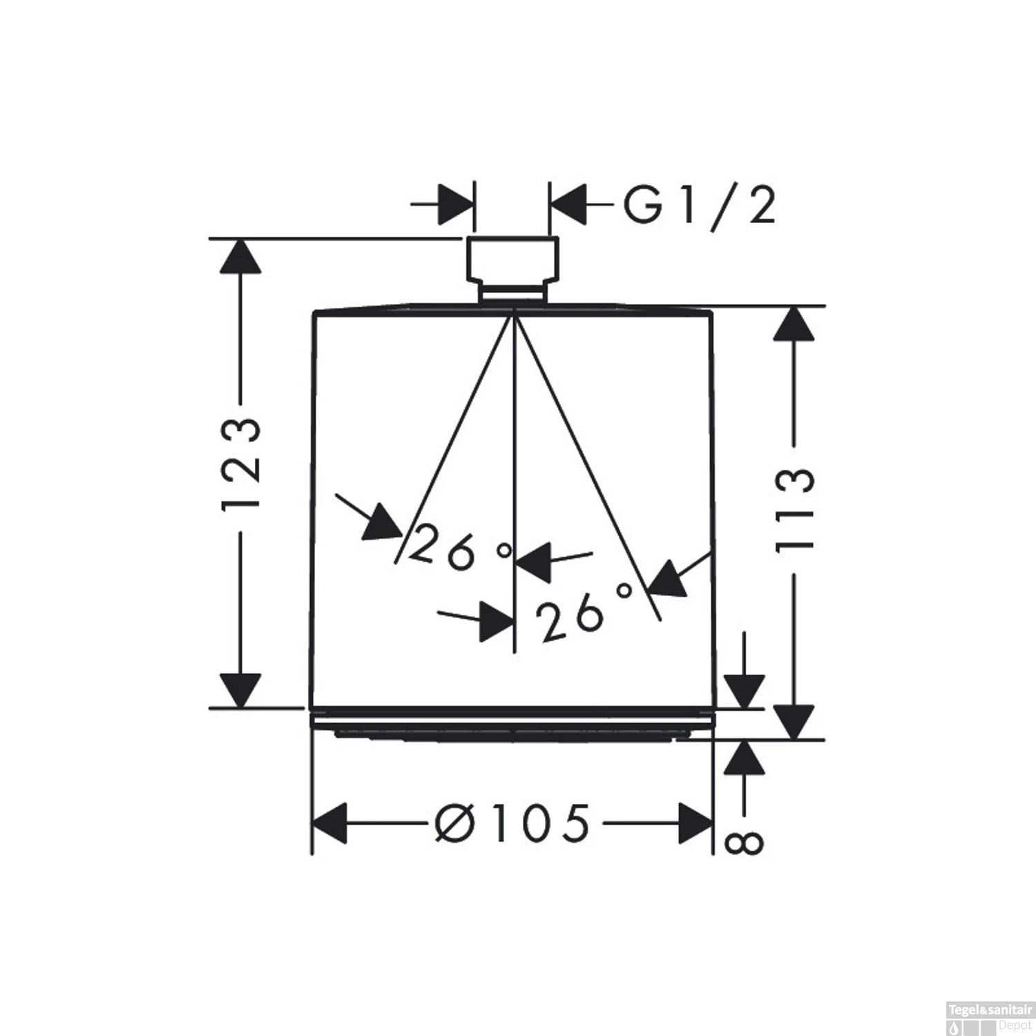 Combineer deze hoofddouche met de Pulsify wandaansluiting van HansGrohe om uw set compleet te maken.