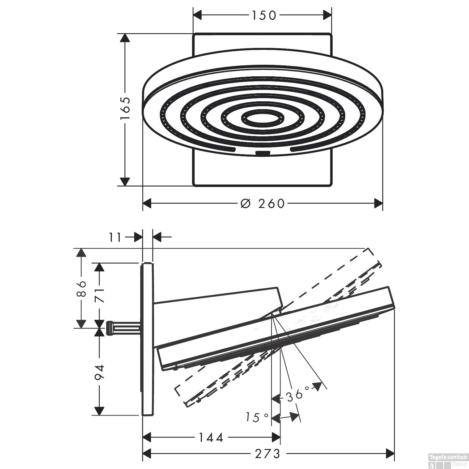 Breng uw douche ervaring naar een hoger niveau met deze hoofddouche uit de Pulsify collectie van HansGrohe! Deze XXL douchekop heeft een diameter van maar liefst 26 centimeter. U zult omhult worden met een ware waterdeken. Deze moderne douchekop zit vol met innovatieve technologieën! Zo is deze regendouche verstelbaar in de gewenste hoek. Op deze manier kunt u altijd optimaal gebruik maken van uw douche. Daarnaast bevat de douche twee verschillende straalsoorten waar u uit kunt kiezen. Dankzij de PowderRain straal kunt u genieten van een efficiënte maar zeer zachte douche! Het water wordt namelijk verdeeld in duizenden kleine microdruppels die zijde zacht zullen aanvoelen op uw huid. Of kies voor de Intense PowderRain voor een intensievere regenstraal. Verder is de kop voorzien van de FastDrain techniek van HansGrohe. Door deze slimme techniek zal de hoofddouche veel minder lang nadruppelen na het douchen. Door de kop te kantelen in 10 graden of meer na het douchen wordt het overige water eenvoudig met 1 straal afgevoerd! Zo staat niemand meer in de regen als u zich al heeft afgedroogd of de douchezone is droog gemaakt.