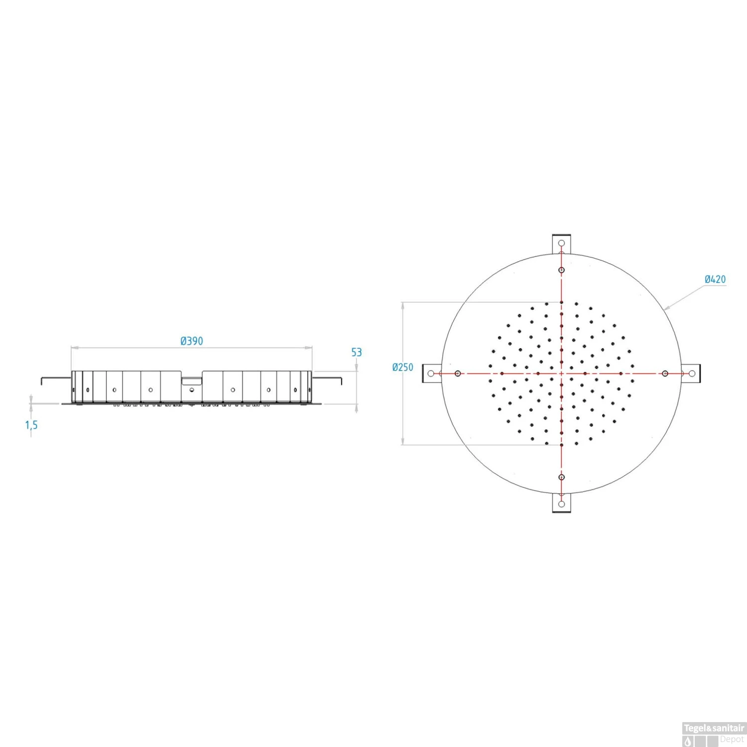 Specificaties Hoofddouche Showerlicious Lagoo Nesso 42 cm RVS Gunmetal PVD: