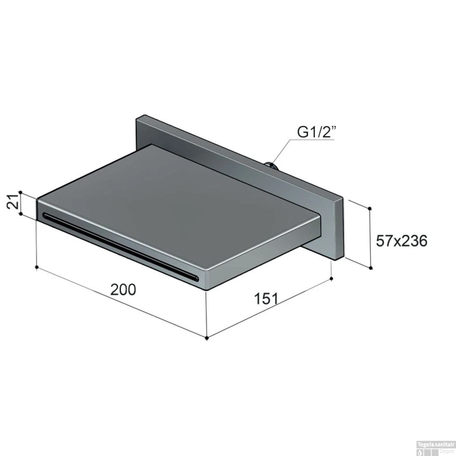 De hoofddouches en uitlopen van de Archie serie zorgen voor een knap staaltje kwaliteit in uw badkamer. Zo ook deze waterval uitloop met een afmeting van 20x15x2.1 cm. De uitloop wordt aan de wand gemonteerd als opbouw, waardoor er een prachtige waterval rechtstreeks uit de muur komt zetten. De uitloop beschikt over 1 straalstand en dat is een waterval, de aansluiting hiervan is 1/2″.