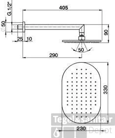 Breedte douchekop 330 mm