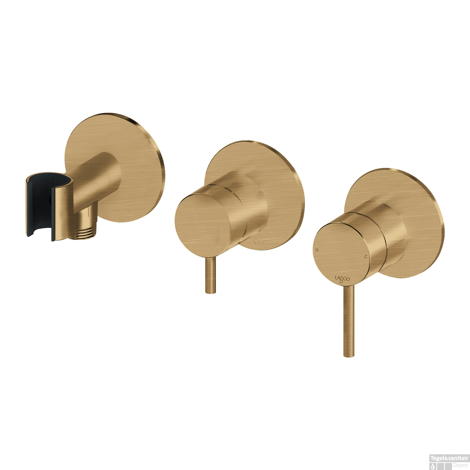 Specificaties Inbouw Douche/Badmengkraan Lagoo Garda met Omstel en Handdouchehouder Messing Geborsteld Goud PVD: