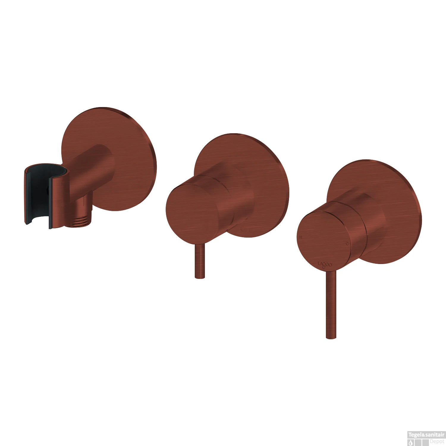 Inbouw Douche/Badmengkraan Lagoo Garda met Omstel en Handdouchehouder Messing Geborsteld Koper PVD